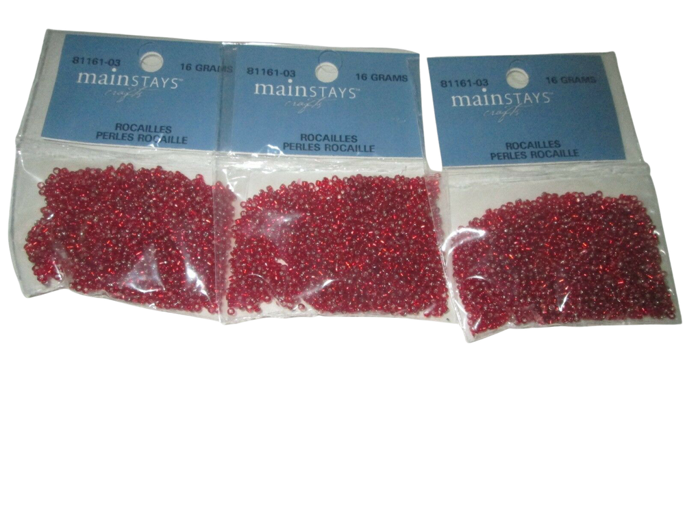 UPC 101853 Mainstays Crafts Rocaille Glass Seed Beads Color - Red 16 Grams per Package AUCTION IS FOR 3 PACKAGES Brand New Sealed Packages...