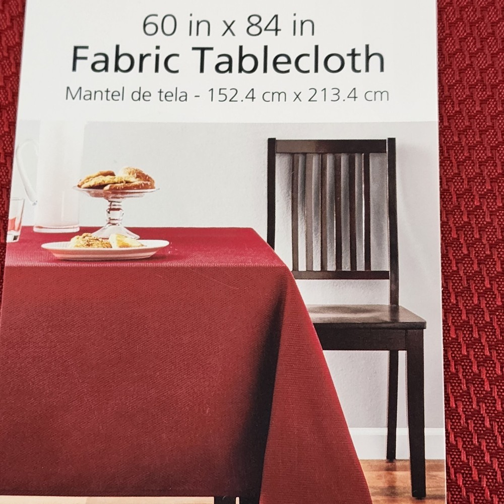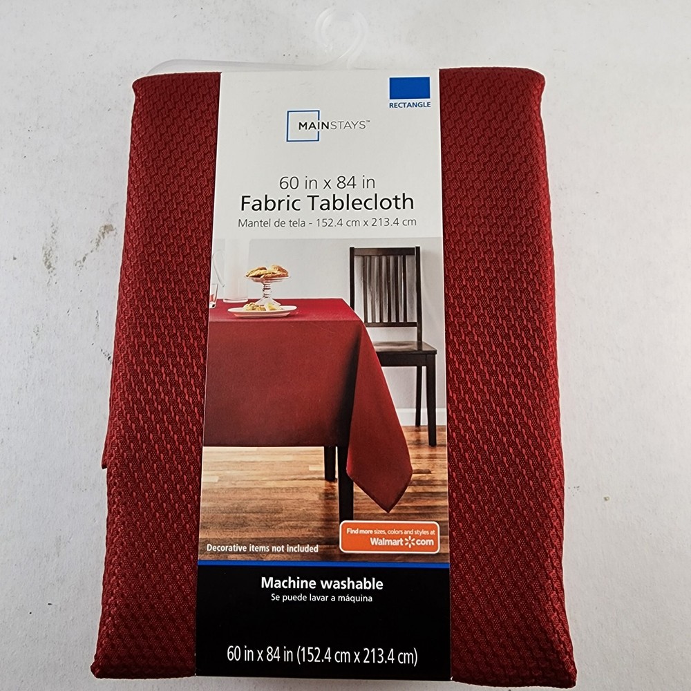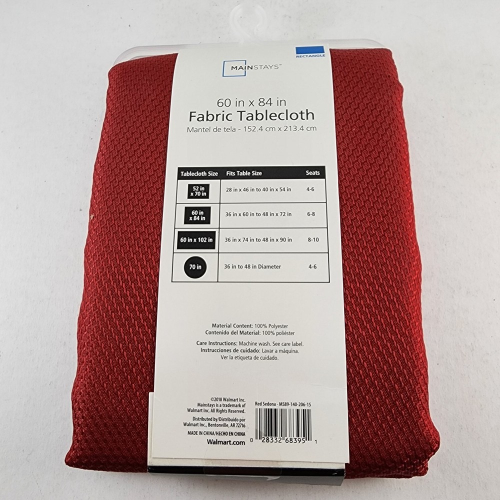 Red Sedona Fabric Tablecloth Kitchen Dining Room 60" x 84" Rectangle Mainstays 100% Polyester Measures 60"W x 84"L Easy care, machine washable Shipping weight is 1.25 pounds Decorative items not inclu...