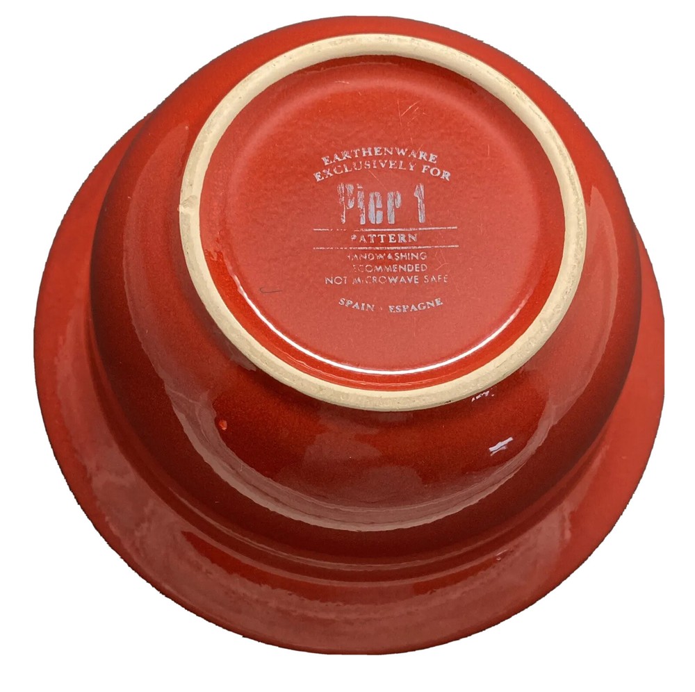 Pier 1 Imports RED Rimmed Cereal Bowl Status: discontinued pattern Rim Width: 7" Height: 3" Weight: 1 pound .4 ounces Crafted In Spain `. Combined shipping is offered and overpayments on shipping will be refunded