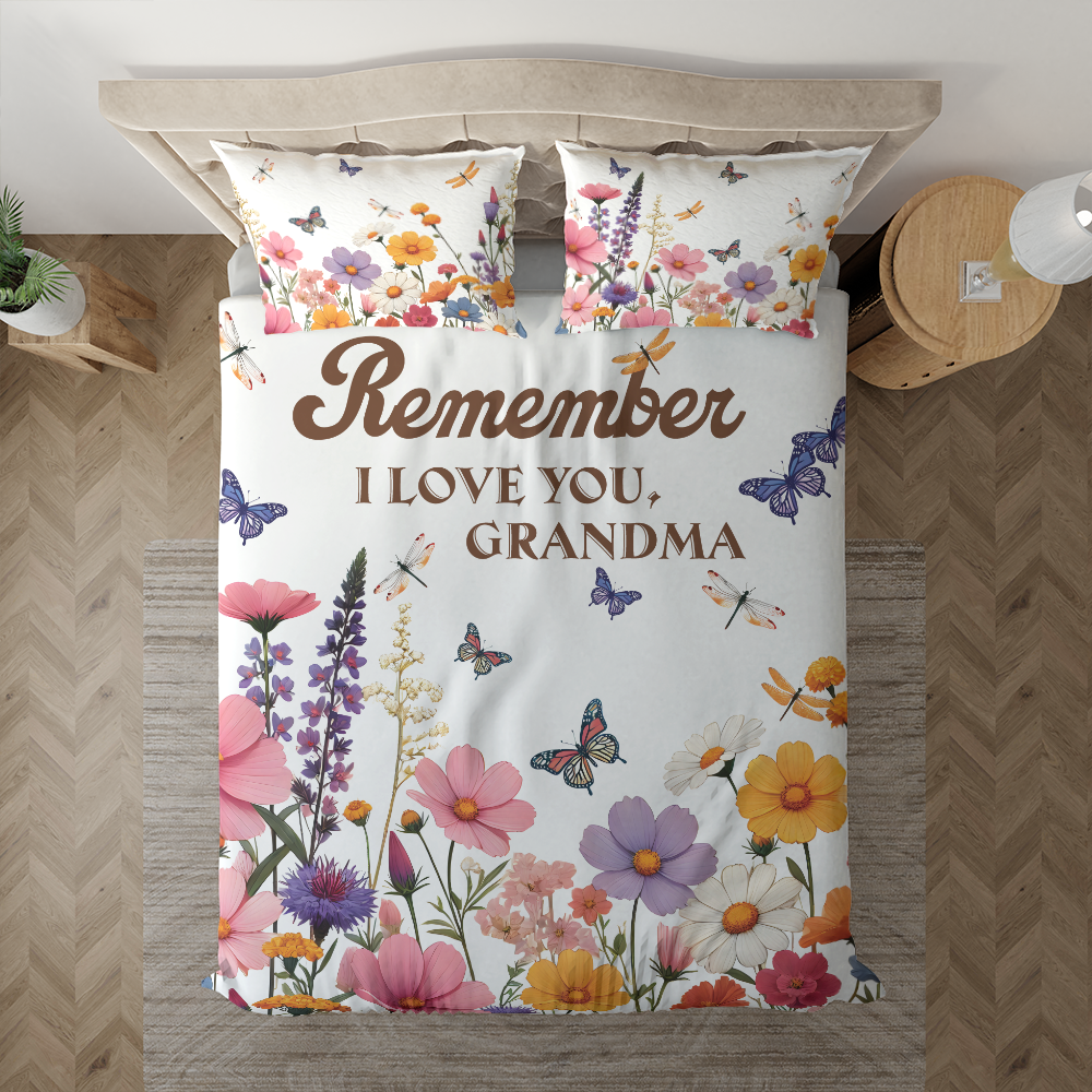 remember I love you grandma bedding, grandma gift from grandkids, cozy bedding set for grandma, grandmother birthday gift, bedding gift for nana, sentimental gifts for grandma, best grandma ever gift, personalized grandma bedding, grandma bedspread set, grandma’s day decoration, mother’s day gift for grandma, grandma room decor gift * Product Details: If you are seeking items to make them feel comfy and have sweet dreams after a long working day, make sure to show them our custom bedding sets. Our custom bedding sets are made with top-notch printing methods which can stick around for a long time. Refresh your bedroom with your own custom bedding set! Our bedding set can make you comfortable in your sleep and keep you rest well before waking up for a new day. Our bedding set includes one duvet cover. Depending on the variant, a bedding set might include one or two pillowcases. 100% Polyester Fabric – Soft, skin-friendly, breathable, comfortable, durable, and lightweight material – Great for your bedroom or the guest room. Our bedding set is neither too heavy nor too light, not too warm and not too cool. - Goes with everything, fits everywhere. The duvet cover set uses eco-friendly dye in the process of printing, and will not fade after repeated washing. Duvet cover with ties at the four corners to keep the comforter in place. It also gets a zipper closure. 100% Polyester Fabric – Soft, skin-friendly, breathable, comfortable, durable, and lightweight material – Great for your bedroom or the guest room. Our bedding set is neither too heavy nor too light, not too warm and not too cool. - Goes with everything, fits everywhere. The duvet cover set uses eco-friendly dye in the process of printing, and will not fade after repeated washing Duvet cover with ties at the four corners to keep the comforter in place. It also gets a zipper closure. * Processing and handling time: This is Print on Demand (PoD) product, it will take 1 – 5 working days for production. Items which have QC problems may need more time for production. * Shipping/ Transit time: Domestic order is expected to deliver within 5-10 business days. International order is expected to arrive within 7-15 working days. Depending on product type. * Cancellation: We can only accept the cancellation if item is still in processing stage. We have no way to hold item once it is in production stage. Normally items will be moved to production 1 day after purchasing. * Refund/ replacement/ return policy: Please contact us within 30 days after receiving item for any question. Basically, we are not able to offer refund/ return/ replacement due to wrong selection of color, size, changing mind, second thought. Thank you for shopping with us! Listing and template services provided by inkFrog
