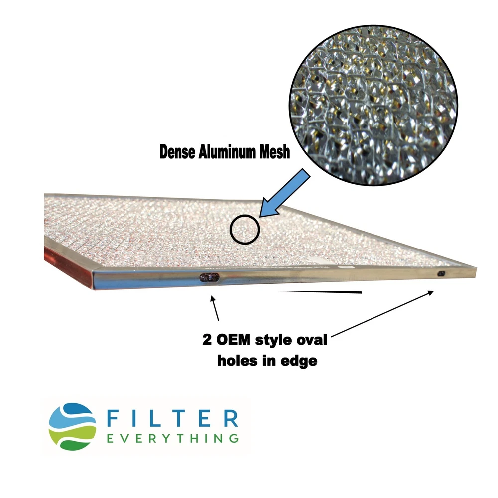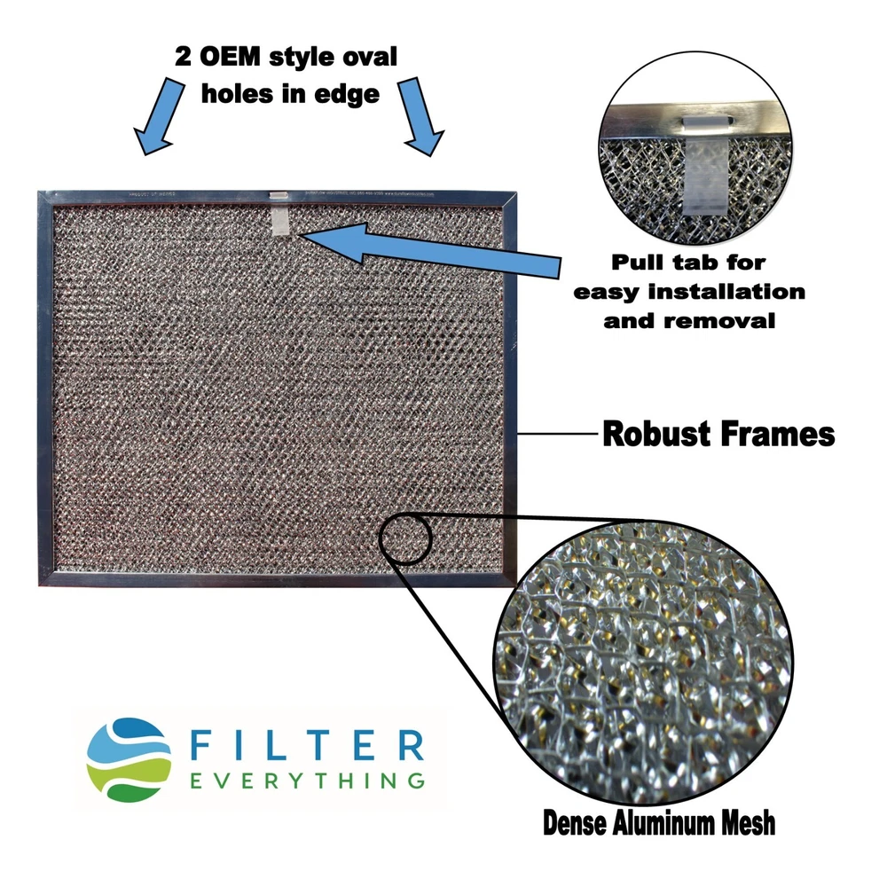 This filter is compatible with Broan 99010299, BPS1FA30, 99010305,99010305D, S99010305 Measures 11-7/8" x 14-11/32" x 3/8" With a pull tab and OEM style oval holes. Features proper pull tab and drain holes identical to OEM filter. Manufactured in North America and ships from our warehouse in Ohio