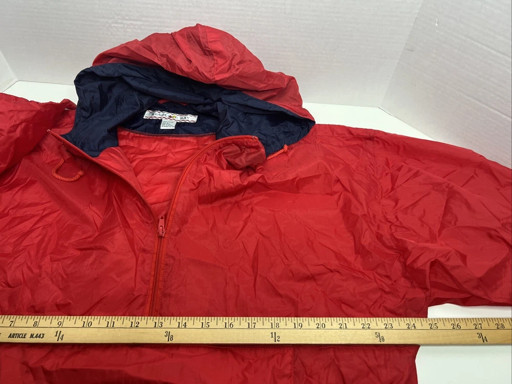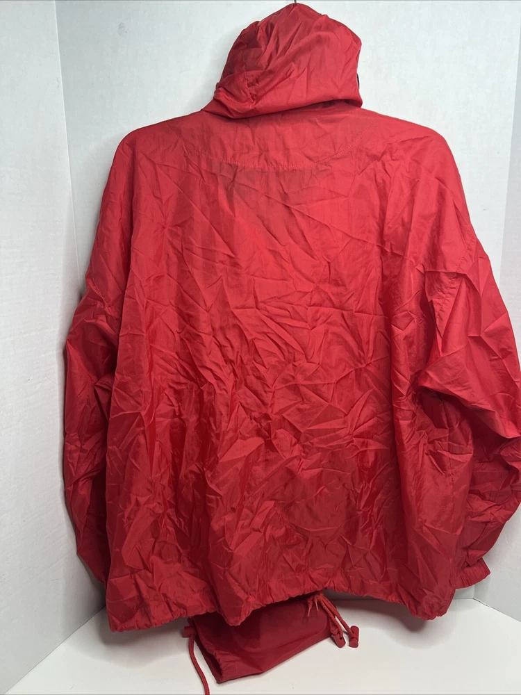 Stay stylish and comfortable in any weather with this Resolute Bay vintage windbreaker jacket. Made with durable nylon fabric and a wind-resistant design, this jacket is perfect for any outdoor activity. The mid-length coat features a full zip closure, long sleeves, and pockets for added convenience. The solid red color and relaxed fit make it a versatile addition to any wardrobe, while the canvas fabric type and American theme add a touch of retro charm. This jacket is suitable for all seasons and can be worn for various activities such as gym and training, track and field, tennis, walking, cycling, golf, baseball, volleyball, soccer, basketball, football, running, and jogging. It is machine washable and easy to care for. Add a touch of hipster and dad vibe to your outfit with this Resolute Bay windbreaker jacket. AS PER EBAY POLICY ALL USED CLOTHES LISTED WERE PROPERLY CLEANED