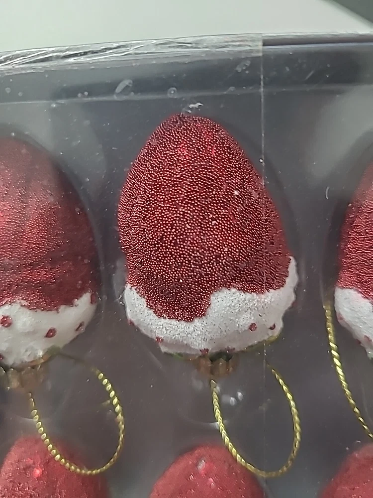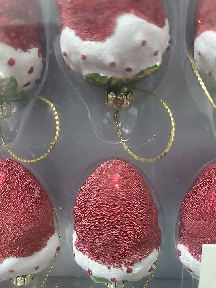 Add a vintage touch to your Christmas decor with this set of 6 handblown strawberry ornaments from Pier 1 Imports. These limited edition ornaments are artist designed and feature a retro style with a multicolor airbrush pattern. Each ornament is hand painted and embellished, making them a unique addition to your holiday decor. The set includes 6 strawberries, each measuring 1.5" in length and 2.25" in height. These handmade ornaments are made of high-quality handblown glass and are perfect for anyone looking to add a touch of vintage charm to their collection. Don't miss out on this original piece from Pier 1 Imports.