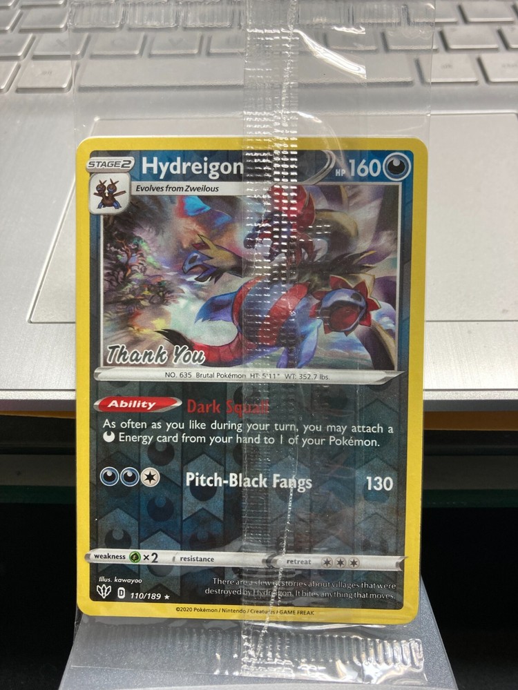 Absolutely love this reverse holo from Darkness Ablaze! The card arrived in perfect condition, just as pictured, and the seller packed it securely with a toploader—no bends or scratches. The holo effect looks amazing in the light, and the artwork really pops. Great price for such a cool card, especially with the discount for multiple orders. Definitely recommend this seller for anyone looking to add to their collection!