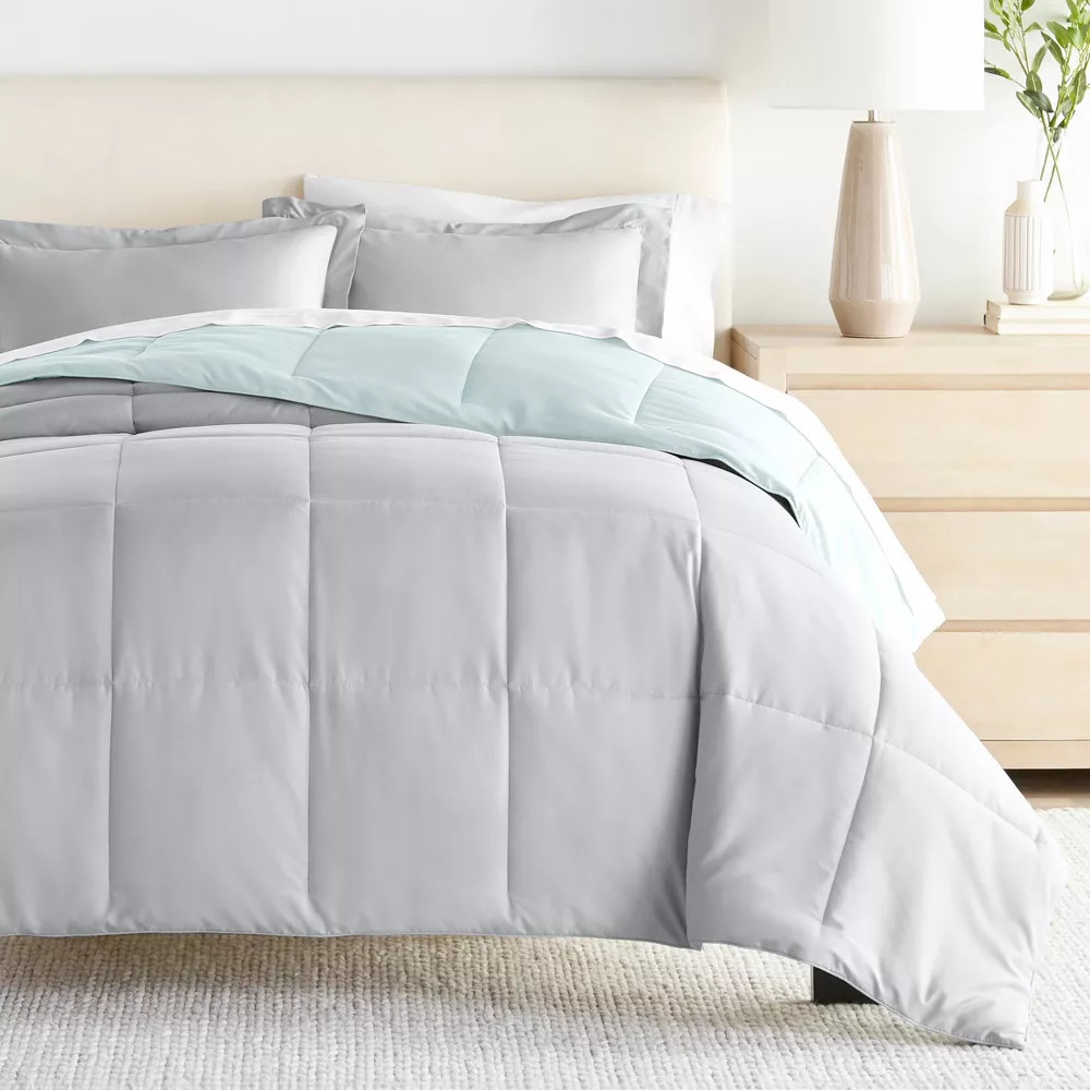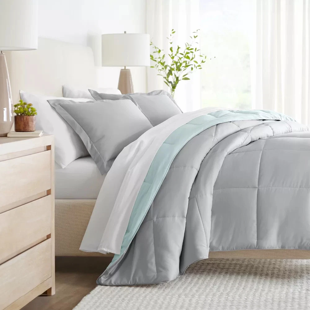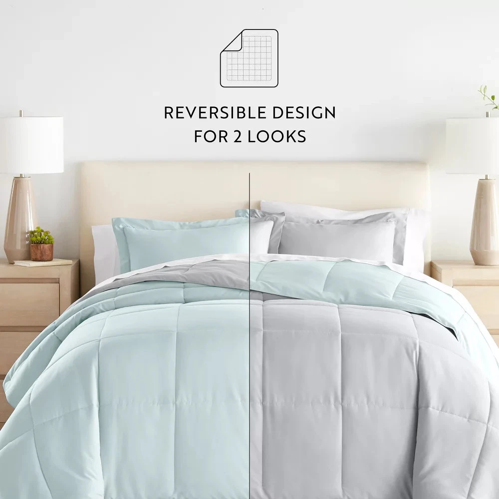 • 3 piece set: 1 Comforter and 2 Shams (Twin/TwinXL option is a 2 piece set: 1 Comforter and 1 Sham). • Microfiber 180 GSM down alternative filling, light weight shell for exceptional softness and drape. • Shell is made of double brushed 95 GSM imported microfiber. • No Shift Baffling - Generous baffle box stitching for optimum loft. • Evenly filled for superior warmth. Description Give your bedding a brand new look and feel with this all season reversible down alternative comforter set. Presenting a quality alternative to down, it's incredible loft and down like feel makes it the perfect comforter to keep you cozy all year round. The end to end baffle box construction with reinforced stitching helps to eliminate the need for regular fluffing by preventing Shop Our Store Contact Us Add to Favorite Sellers Reversible Comforter and Shams Set, Ultra Soft - Becky Cameron, Aqua / Light Gray, King/California King Product Details • 3 piece set: 1 Comforter and 2 Shams (Twin/TwinXL option is a 2 piece set: 1 Comforter and 1 Sham). • Microfiber 180 GSM down alternative filling, light weight shell for exceptional softness and drape. • Shell is made of double brushed 95 GSM imported microfiber. • No Shift Baffling - Generous baffle box stitching for optimum loft. • Evenly filled for superior warmth. Description Give your bedding a brand new look and feel with this all season reversible down alternative comforter set. Presenting a quality alternative to down, it's incredible loft and down like feel makes it the perfect comforter to keep you cozy all year round. The end to end baffle box construction with reinforced stitching helps to eliminate the need for regular fluffing by preventing the fibers from shifting. Featuring a reversible design of aesthetically matched colors, this set is ideal for making quick style changes to your sleep space! The set includes 3 pieces(1 Comforter and 2 Shams), and the Twin/TwinXL set comes as a 2 piece set (1 Comforter and 1 Sham). Number of Pieces: 3 Piece 1: Comforter: 96 inches (L) x 108 inches (W), Quantity 1 Piece 2: Pillow Sham: 36 inches (L) x 20 inches (W), Quantity 2 Closure Type: Pillow Sham: 8" Inner Envelope Fabric Name: Microfiber Textile Material: 100% Microfiber Style: Comforter Bedding Sets Backing Material: 100% Polyester Fabric Weight Type: Lightweight Fabric Industry or Government Certifications: OEKO-TEX STANDARD 100 Thread Count: Not Applicable Protective Qualities: Wrinkle-Resistant Includes: Comforter OEKO-TEX Institution: HOHENSTEIN HTTI OEKO-TEX Certification Number: 18.HCN.48353 Care and Cleaning: Machine Wash, Tumble Dry Payment For fixed priced listings, Buy it Now and Best Offer, payment is required at the time of purchase. We accept PayPal and credit cards via PayPal. We make every effort of shipping within 1 business day of payment clearing. All payments must be through PayPal, utilizing eBay checkout. For auction listings, payment is required within two (2) days of purchase. Any items not paid within two (5) days will risk the product being re-listed and sold to another buyer. Taxes - US We collect sales tax, as required by law. Please see the Shipping and Payments tab for more information. Shipping For fixed priced listings, Buy it Now and Best Offer, payment is required at the time of purchase. We accept PayPal and credit cards via PayPal. We make every effort of shipping within 1 business day of payment clearing. All payments must be through PayPal, utilizing eBay checkout. For auction listings, payment is required within two (2) days of purchase. Any items not paid within two (2) days will risk the product being re-listed and sold to another buyer. Policies If you do need to return your item, please contact us via phone or email (you will receive an email when your product ships with additional details - Subject: Important information about your purchase from Bullseye Deals). You will then be provided with a return shipping label and packing slip. Pack the item carefully. Include the packing slip, apply the shipping label, and return the item within 5 business days of the date you request a return. You must return the item within 5 business days of requesting the return, or your return will be canceled. Once we receive your order we will inspect the return. Please allow up to 5 business days of receiving the returned item for your refund.