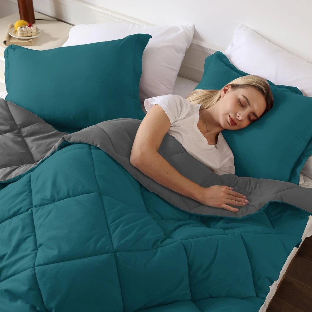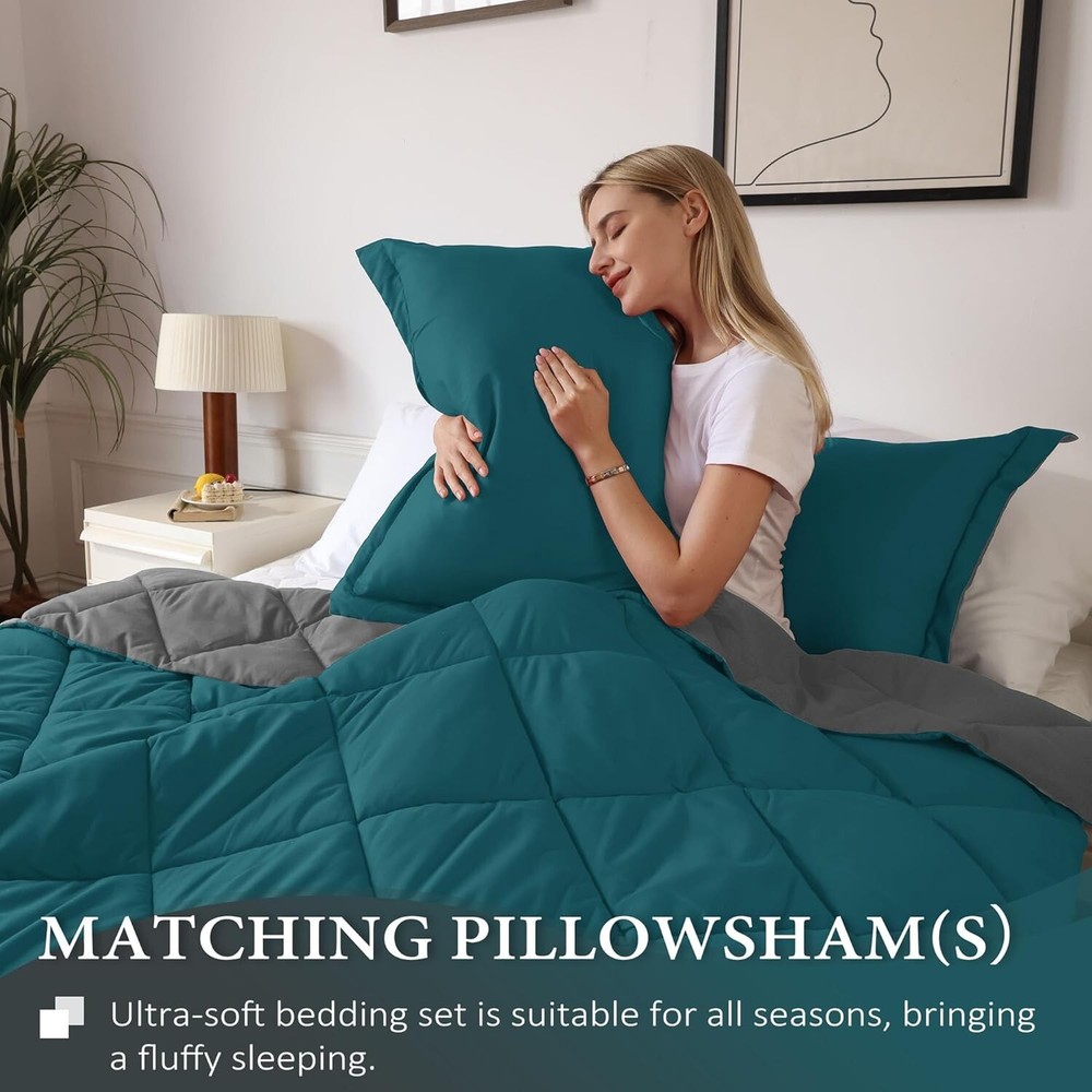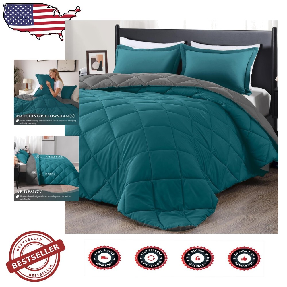 This comforter set is a game-changer! The ultra-soft, reversible design looks luxurious while keeping me perfectly cozy year-round. I love how the ocean-gray shade elevates my bedroom decor, and the California King size fits my bed perfectly. The included shams complete the polished look. Washes beautifully and feels like sleeping in a high-end hotel every night—worth every penny!
