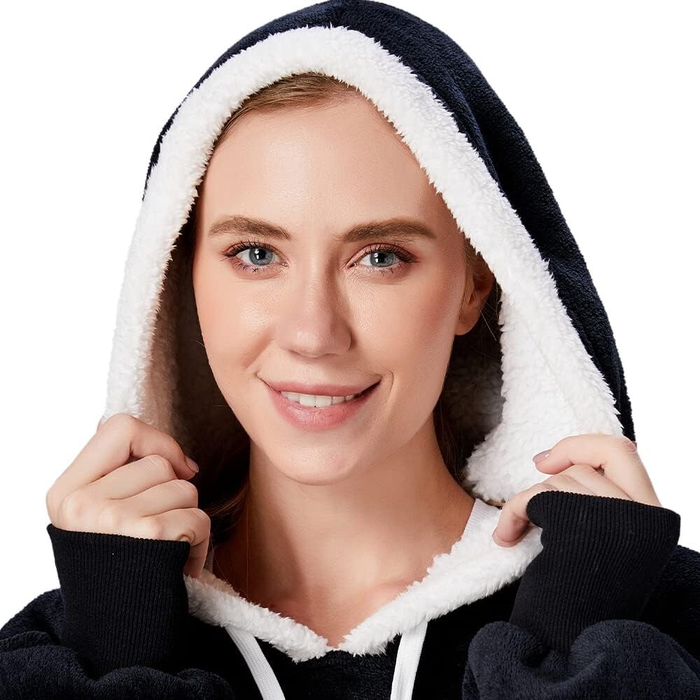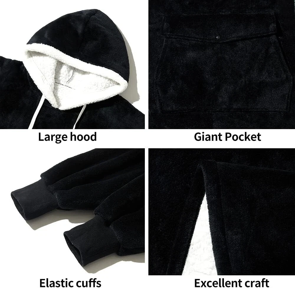 This hoodie is a game-changer! Super soft and cozy, perfect for lounging or staying warm. Love the reversible design and the huge pockets—great for keeping my phone, snacks, and remote handy. The oversized fit is comfy, and the adjustable hood adds extra snugness. A must-have for lazy days!