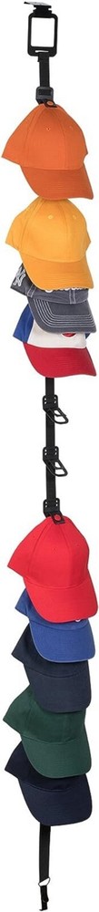 Patented system holds up to 15 caps Easily mounts over door with clip or can be screwed into wall Hat clips can be adjusted up and down as needed Patented clip, clips to button on top of cap Fits both household (1.50-Inch) and commercial (1.75-Inch) sized doors Suitable for all kinds of caps with or without buttons