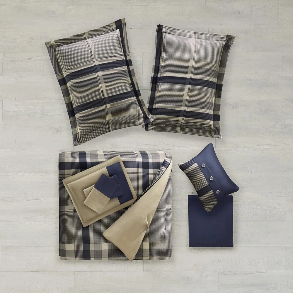 Store New Arrivals Add to Favorite View Feedback Contact Robbie Cozy Comforter Set Bed in a Bag, Modern Casual All Season Bedding Set, Matching Sham, Decorative Pillow, Navy/Tan, Full, 9 Piece Description Item model number ID10-1226 Style Casual Pattern Geometric Country of Origin China Theme Modern Department unisex-adult Number of Pieces 9 Specifications certified frustration-free Product Dimensions 86 x 78 x 1 inches Material Polyester Seasons All Is Discontinued By Manufacturer No Included Components Pillow Sham, Comforter, Bed Skirt, Flat Sheet, Pillow Item dimensions L x W x H 86 x 78 x 1 inches Fabric Type 100% Polyester Item Weight 7.72 pounds Color Navy/Tan Comforter W/ Sheet Set Global Trade Identification Number 00675716965631 Batteries required No Refill polyester Product Care Instructions Machine Wash Size Full 100% Polyester Complete bedding set with comforter, sheet set, bedskirt and decorative pillow soft brushed printed microfiber, 5oz/sq yard polyester filling; Soft brushed printed microfiber flat sheet and fitted sheet; embroidered decorative pillow 1 Comforter:78''W x 86''L 2 Standard Shams:20''W x 26"L + 2''D (2) 1 Bedskirt:54''W x 75''L + 14''D 1 Decorative Pillow:12''W x 16''L 1 Flat Sheet:81''W x 96''L 1 Fitted Sheet:54''W x 75''L + 12"D 2 Pillowcases:20''W x 30"L (2) Machine Washable, Spot Clean pillow Classically stylish, the Intelligent Design Robbie Comforter and Sheet Set will bring a comfortable look and feel to your room. The comforter and matching shams sport a plaid print in a modern color palette of navy and taupe for a casual update. A complete sheet set features a contrasting navy flange that adds a striking accent to the sheet set, while an included decorative pillow and navy bed skirt provides dimension and a finished look. With its handsome combination of bold and soft colors, this comforter and sheet set adds visual appeal and comfort to any space. ABOUT US We offer the best prices around on high quality products. Our E-store includes media such as books, movies, music and games while offering electronics, toys, sporting apparel, clothing, tools, general home, garden items and more. SHIPPING We are always working hard to ensure your package arrives as soon as possible. Please understand that some factors like weather, high postal traffic, and the performance of shipping companies are outside of our control. We offer free shipping to the lower 48 states and ship within 2 business days of payment, usually sooner. We do not accept P.O. Boxes. Please provide a physical address. For shipping outside of the continental USA, we only use eBay's Global Shipping Program.The item is shipped to KY and then sent to the rest of the world. International customers are responsible for all duties and taxes. Continue to check out in order to calculate costs for shipping the item to your country. Messages regarding eBay's Global Shipping Program MUST be directed at eBay EXCLUSIVELY. RETURNS We offer a 30-Day Return Policy on items which you are not completely satisfied with. You have the option for a full-refund or an exchange of the item. No returns are available on items shipped outside of the USA. PAYMENT We accept PayPal. CONTACT US This page content is yet to come Please ad us to your favorite seller and visit again later Thank You CUSTOMER SATISFACTION We try our very best to make sure every customer is completely satisfied. If there's a problem, message us! We're happy to help. WE ACCEPT Copyright © 2021 AutoDS. | All Rights Reserved