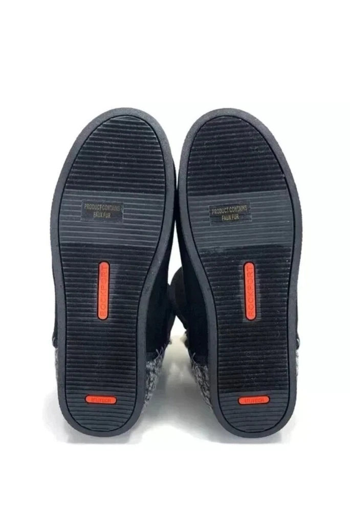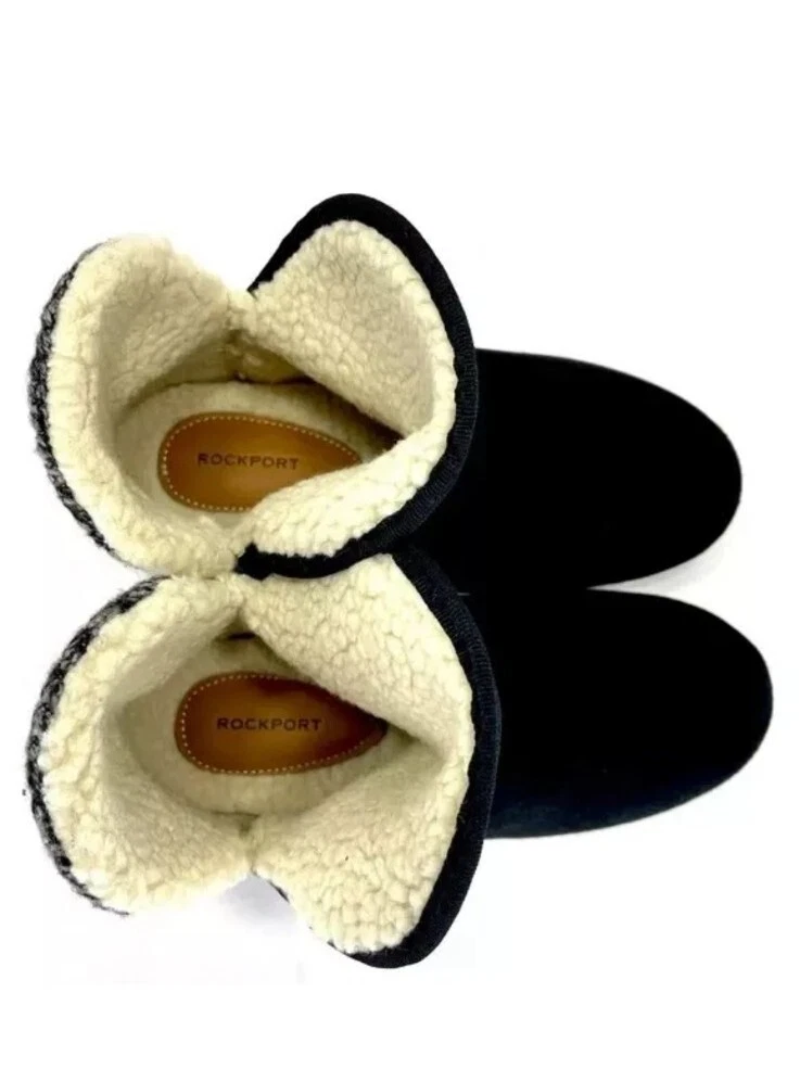 NEW Rockport Women's Slipper Boots. Absolutely adorable and oh so cozy! These are brand new, never worn. BOX NOT INCLUDED!!!! Condition: NEW (NO BOX INCLUDED) Size: 6 M (Women's) Color: Black with gray accents Fabric: Faux Fur Lined Slipper Boots with faux suede outer. Measurements: SEE PHOTOS See last photos in listing! Please see ALL photos for item specifics, details, design, condition, style, color, features, measurements, etc.!!! Zoom in on photos for better view. NO RETURNS OR REFUNDS!! Please be 100% sure of your purchase before buying. Pease review all photos carefully and ask any questions in advance. All items are sold "as is" so please be sure of your purchase (condition, size, style, etc) before bidding or buying. Please see my other listings for more great deals. Thank you for looking.