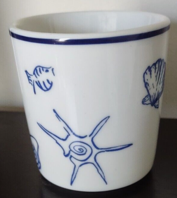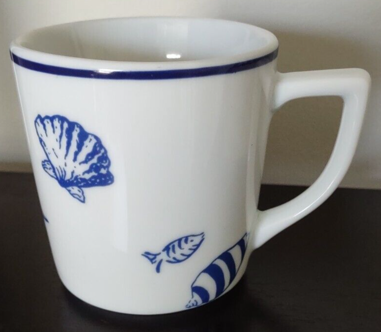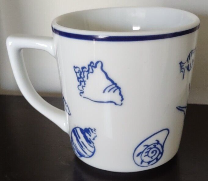Rosanna Imports Seashells White Blue Rim Coffee Cup Mug. Very good pre-owned condition....
