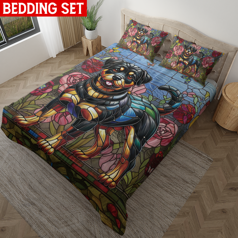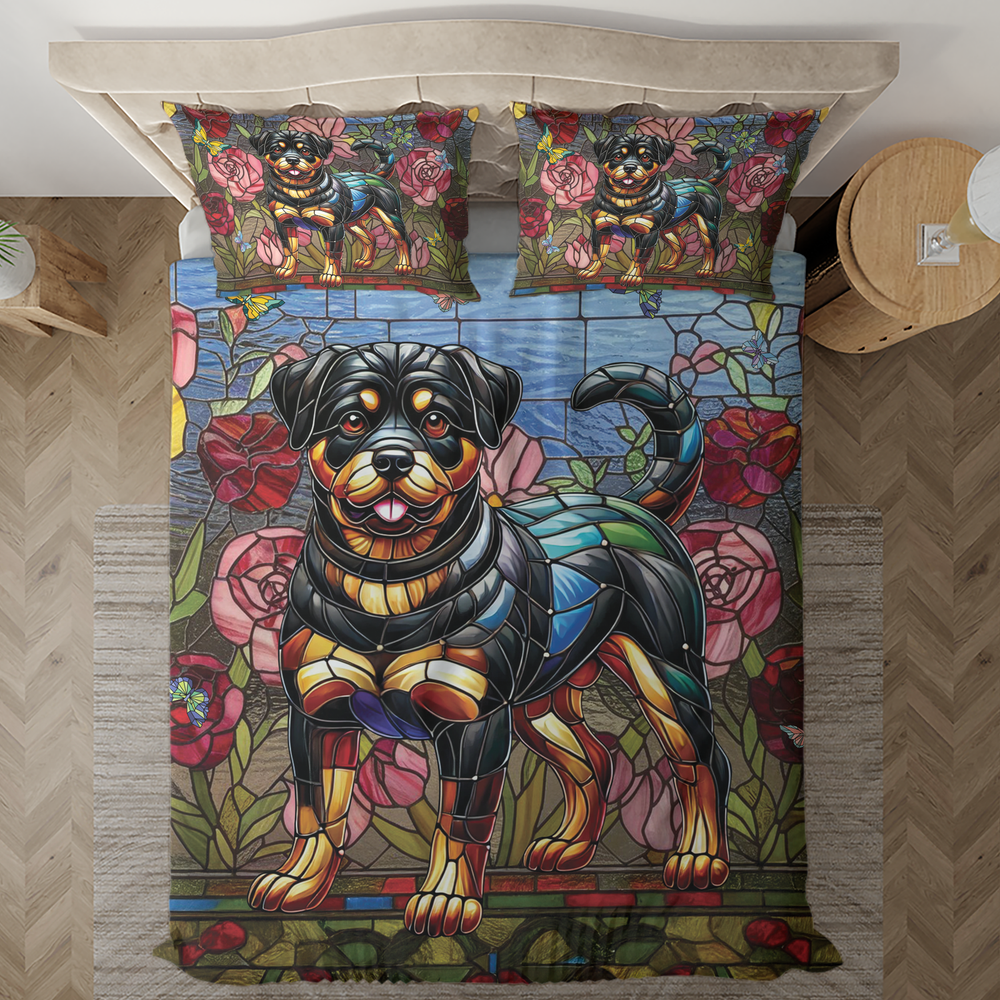 Rottweiler dog bedding, Pet lover duvet cover, Colorful dog Rottweiler bedspread, Rottweiler dog bedroom decor, Dog print comforter set, Home decor for dog lovers, Decorative pet-themed bedding, Cute Rottweiler bed set, Cozy dog lover bedding, Unique animal print bedding, Dog lover bedroom set, Vibrant dog design comforter, Soft dog-themed duvet cover, Bedroom set with dog print * Product Details: If you are seeking items to make them feel comfy and have sweet dreams after a long working day, make sure to show them our custom bedding sets. Our custom bedding sets are made with top-notch printing methods which can stick around for a long time. Refresh your bedroom with your own custom bedding set! Our bedding set can make you comfortable in your sleep and keep you rest well before waking up for a new day. Our bedding set includes one duvet cover. Depending on the variant, a bedding set might include one or two pillowcases. 100% Polyester Fabric – Soft, skin-friendly, breathable, comfortable, durable, and lightweight material – Great for your bedroom or the guest room. Our bedding set is neither too heavy nor too light, not too warm and not too cool. - Goes with everything, fits everywhere. The duvet cover set uses eco-friendly dye in the process of printing, and will not fade after repeated washing. Duvet cover with ties at the four corners to keep the comforter in place. It also gets a zipper closure. 100% Polyester Fabric – Soft, skin-friendly, breathable, comfortable, durable, and lightweight material – Great for your bedroom or the guest room. Our bedding set is neither too heavy nor too light, not too warm and not too cool. - Goes with everything, fits everywhere. The duvet cover set uses eco-friendly dye in the process of printing, and will not fade after repeated washing Duvet cover with ties at the four corners to keep the comforter in place. It also gets a zipper closure. * Processing and handling time: This is Print on Demand (PoD) product, it will take 1 – 5 working days for production. Items which have QC problems may need more time for production. * Shipping/ Transit time: Domestic order is expected to deliver within 5-10 business days. International order is expected to arrive within 7-15 working days. Depending on product type. * Cancellation: We can only accept the cancellation if item is still in processing stage. We have no way to hold item once it is in production stage. Normally items will be moved to production 1 day after purchasing. * Refund/ replacement/ return policy: Please contact us within 30 days after receiving item for any question. Basically, we are not able to offer refund/ return/ replacement due to wrong selection of color, size, changing mind, second thought. Thank you for shopping with us! Listing and template services provided by inkFrog