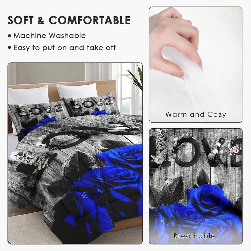 This bedding set is an absolute dream! The dark blue floral pattern is gorgeous and the microfiber feels so soft and luxurious. It washes beautifully and the round design makes my bed look so inviting. Perfect cozy upgrade!