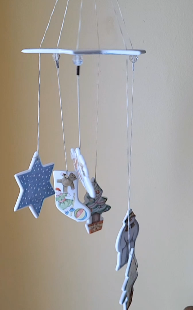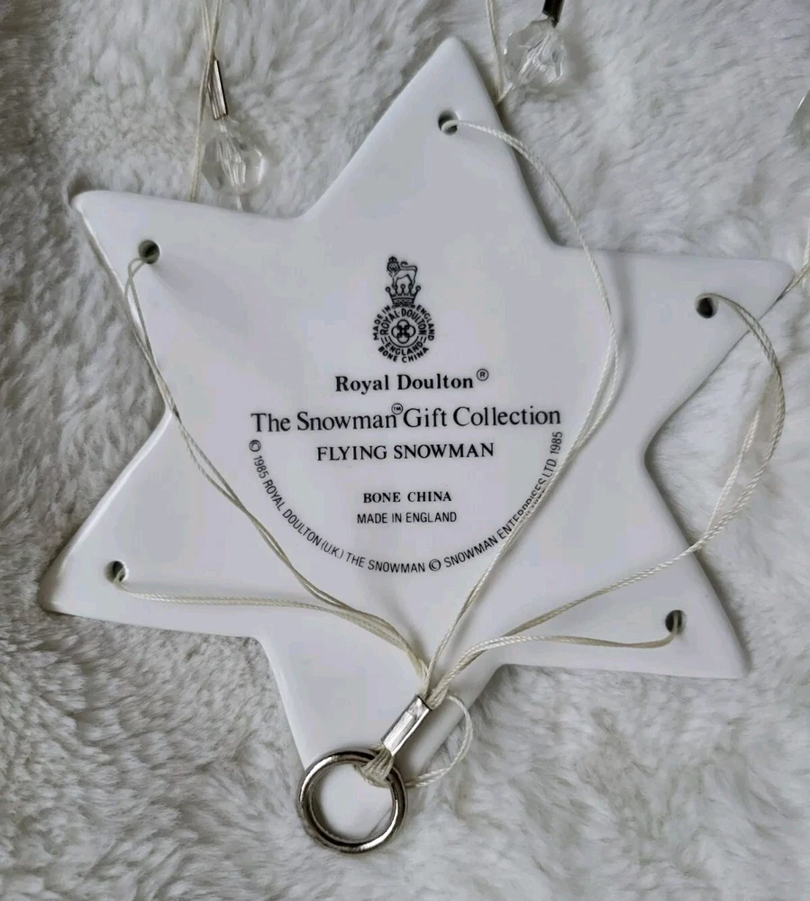 Add a touch of vintage charm to your Christmas decor with this beautiful Royal Doulton Flying Snowman Wind Chime. Made in England from bone china and finished with a glossy touch, this medium-sized wind chime features a multicolored design and is part of the 1980s collection. The chime is a licensed reproduction and is perfect for anyone who loves the character of The Snowman and the seasonal theme. Hang this wind chime in any room of your home and enjoy the gentle sound of the snowman's wings flapping in the breeze. This special edition item comes in its original box and is a must-have for collectors and fans of The Snowman character family. Don't miss out on this unique piece, add it to your collection today! This item is pre-owned and in excellent/mint condition. It comes in the original box. The box is worn with a small water stain on one corner that has not affected the item. See photos and video.