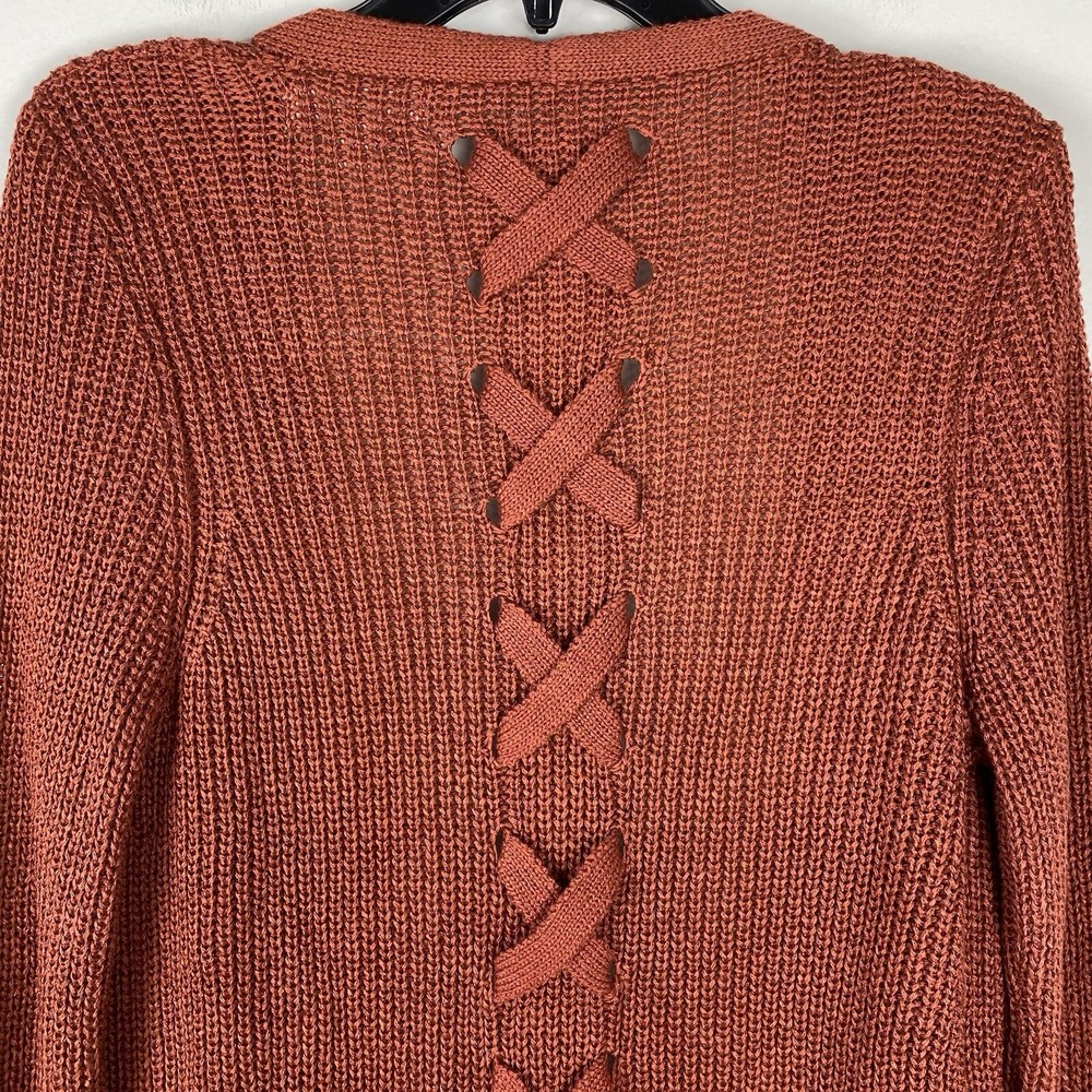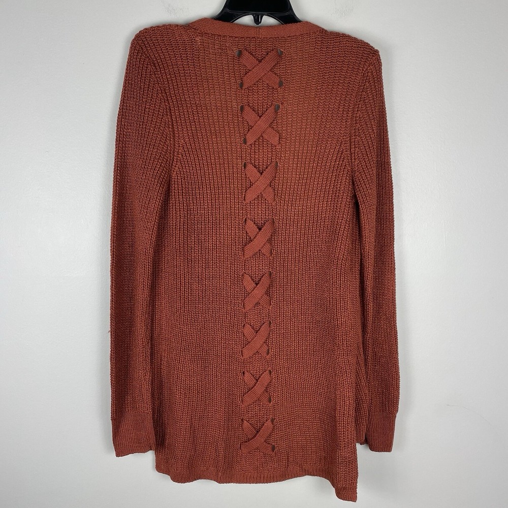 Womens Small Long Cardigan Cozy Comfort Sweater Rust Orange Back Detail Pinque boutique New No Tag Bust Width Laid Flat 19 Length 29 front / back 31.5...