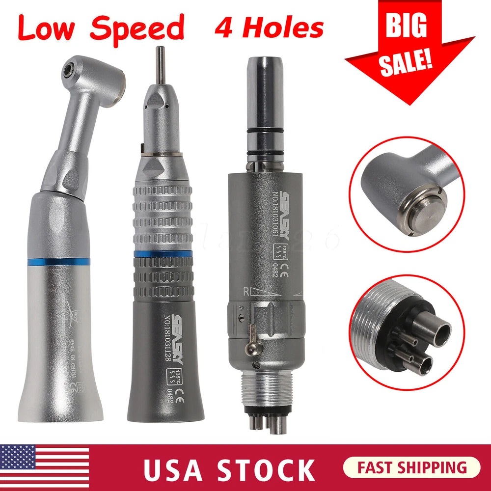 Description Dental Slow Low Speed Handpiece Push Button (Latch type) 4 Hole E-type This complete kit includes low speed handpiece contra angle model, low speed handpiece straight model and low speed dental air motor. Features For Dental Handpiece: - E-type connector - Push Button (Latch type) - Precise technology, Steady, no vibration while revolving, offering a steady operation. - Suitable for any E-type handpiece accords with ISO standard - 135°C Autoclavable, suitable for both steam and chemical autoclave Contra angle handpiece - Low Speed 22,000-27,000 rpm. - The shank of the instrument mounted therein is 2.35 mm - Fastening of the instruments with a turning latch - Autoclavable 135°C - For any lab or E-type motors Straight Nose cone - Working pressure: 0.3MPa (4/2-hole); - 0.25MPa (2/4-hole) (Measure meter is installed at the end of air motor to measure the air pressure). - Revolution: about 22000-27000r/min (adjustable between clockwise or anticlockwise) - Noise: ≤68dB - Air consumption: about 56L/min - Ratio: 1:1 - Max speed of contra angle: 25000rpm/min. Air Mortor - Supply air pressure: 245-392KPa (2.5-4kgf/CM2) - 1:1 Direct Drive - 2/4 holes - Max speed 20,000 min-1 Specifications For Dental Handpiece: Air-in Pressure(kg/c㎡) Motor Rotation(rpm) Air Wastage:(N1/min) 2.5 22,000 42 3 25,000 51 4 27,000 72 Packing List: - E-type air motor 4-Hole: 1 each - Straight nose cone: 1 each - Contra Angle handpiece: 1 each (Push button / Latch type) - Water spray nozzle: 1 each - Oil spray nozzle: 1 each - CAP Spanner: 1 each - English manual: 1 each FDA Statement The sale of this item may be subject to regulation by the U.S. Food and Drug Administration and state and local regulatory agencies. If so, you can bid on this item only if you are an authorized purchaser. If the item is subject to FDA regulation, I will verify your status as an authorized purchaser of this item before shipping of the item. Payment We accept PayPal payment ONLY, it is easy and safe. Payment should be sent within 7 (SEVEN) days of auction closing. All winning bidders whom won our item, please let me know your contact number after you made the full payment , we need this number to make sure you can receive your item in time, and also for emergency contact consideration. Feedback IMPORTANT INFORMATION ON OUR POLICY AND FEEDBACK Please leave me FIVE STAR POSITIVE feedback if you are satisfied with our items. We try to be fair and accurate with all of our product listings and descriptions. Please read each auction, bid, and sale carefully. We will appreciate it if you please email us before leaving negative feedback. If there is a problem, we can work together to resolve it. We strive to always be extremely fair and always try to work with reasonable customers. Negative feedback doesn't go away and should only be left as a last resort! We strive for positive feedback, harmonious relations and even friendships. We will always make every attempt possible to resolve issues if we made a mistake.(It happens). Please do not assume a mistake is intentional. Let us know if our service could be better!! Shipping International Shipping to worldwide. Handling within 24 business hours. Tracking info of your parcel is available. Returns could be accepted within 60 days after receipt of the item. Import duties, taxes and charges are not included in the item price or shipping charges. These charges are the buyer's responsibility.Please check with your country's customs office to determine what these additional costs will be prior to bidding/buying. It usually takes 15-45 business days to arrive by economy international shipping and 7-12 business days by express. The following form is for your reference. Returns Returns could be accepted within 30 days after receipt of the item Terms of Sale: Refund or replacement request is available only the requests within 1 week after parcel received & returning the item as the same condition as received. Please contact us to request a return authorization. Your name, auction number, and reason for return should be included in the email. All items returned must contain all original packaging materials.Please repack the item carefully. Items returned will be tested and a new replacement will be shipped to the buyer immediately when found defective. In the event that a suitable replacement is not available then a refund will be issued. Shipping, handling and insurance fees are non refundable. If the item is found non-defective, the item will be sent back to the buyer at buyer's expense. Items returned without RMA number will be refused and returned to the sender. Buyer is responsible for All Return Postage and Shipping Charges. Buyer is responsible for additional shipping costs for items that are returned refused and / or undeliverable. We do not accept any returns without an authorization number on the box or label it is being returned. Contact us We will reply all messages within 24 business hours and we are able to give you a quick response during the duty time. If we are off duty, please kindly be patient and give us a little more time, not just leave the neutral or negative feedback without communication. Every problem will be solved ASAP if you contact us! Copyright?Dreamland Dental Store,All rights reserved. FDA for Curing Light: 510(K) Number: K192233 Regulation Number: 21 CFR 872.6070 Product Code: EBZ FDA for Handpiece: 510(K) Number: K181691 Regulation Number: 872.4200 Classification Product Code: EFB Subsequent Product Code: EGS FDA for Scaler: 510(K) Number: K163414 Regulation Number: 872.4850 Product Code: ELC