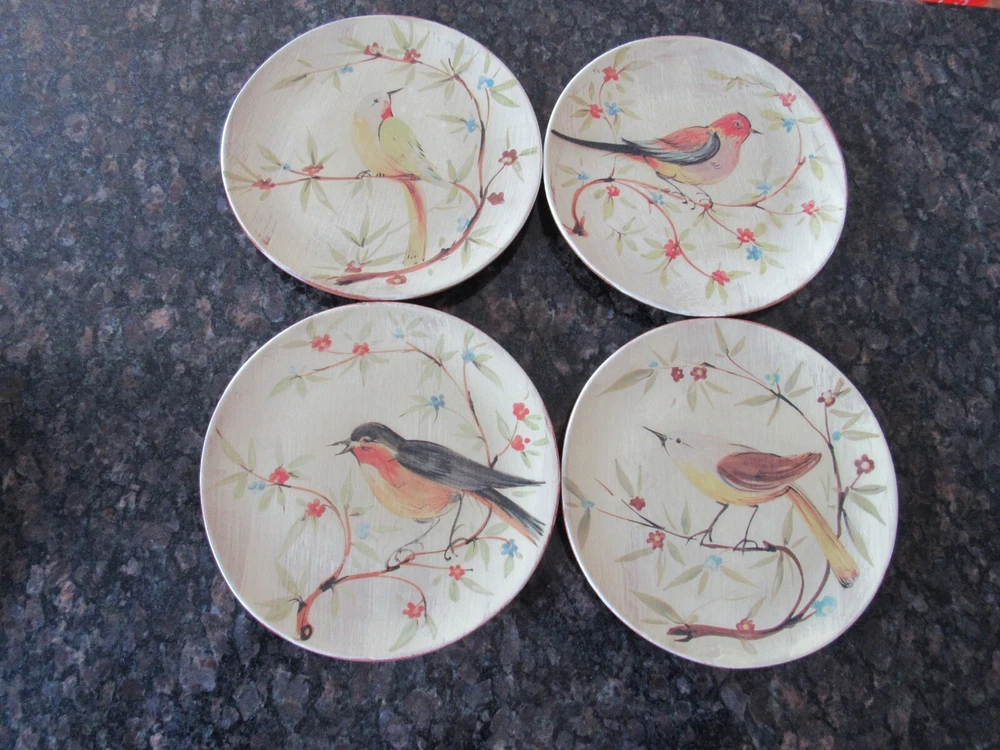 Set of 4 Pier 1 Imports Hand Painted IBird Plates Each Plate has a Different Bird on it Measure 9.25" Earthenware Made in Italy Excellent Condition; Never Used They were Displayed Only Weigh 4 Lbs 12 Ozs Unboxed USPS Priority Shipping I have another set of 4 in this Pattern; Will Combine Shipping