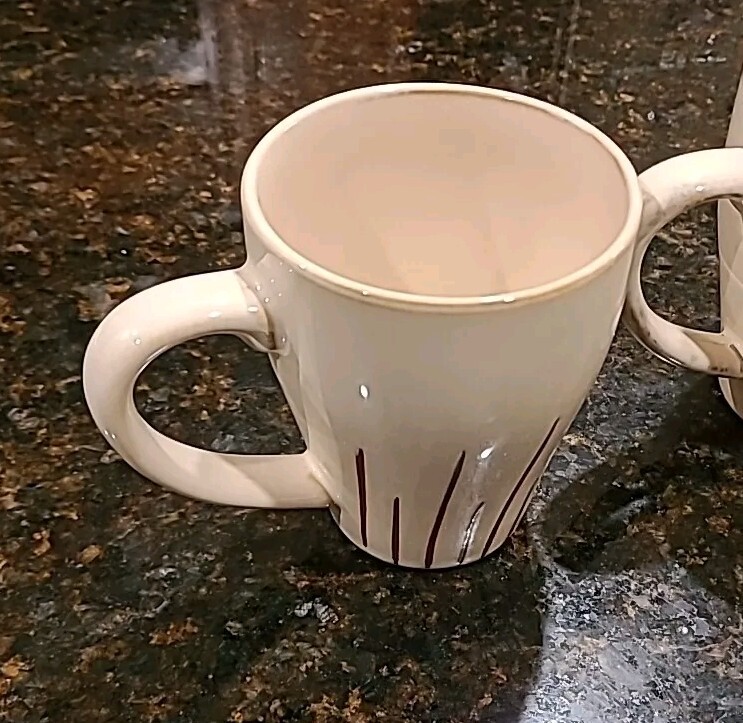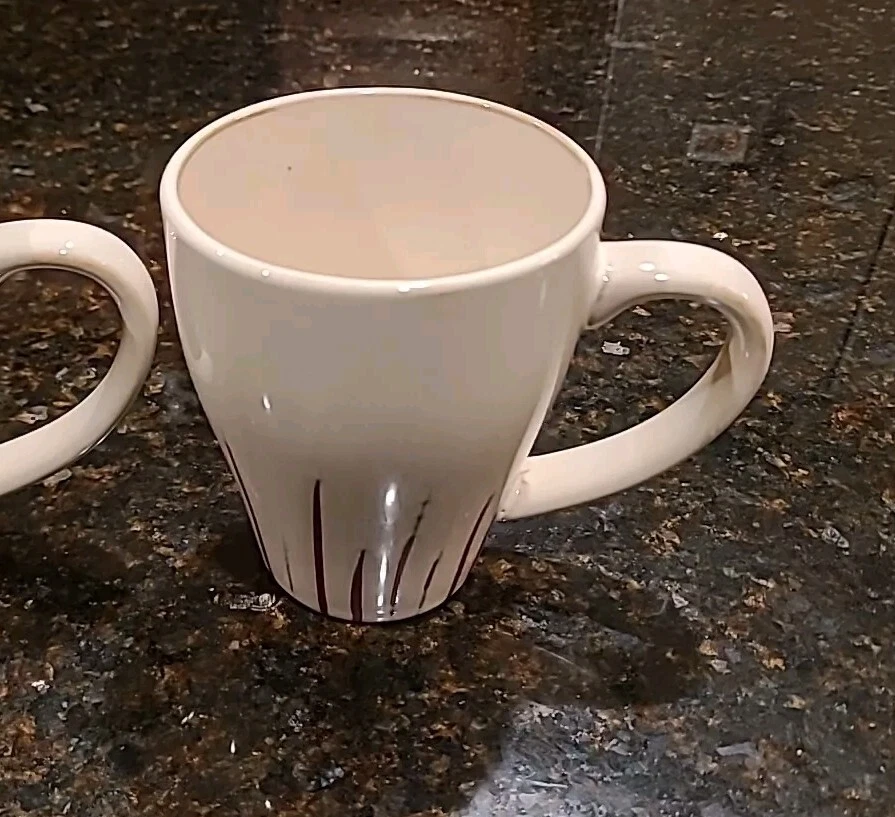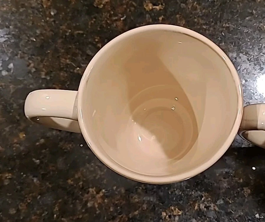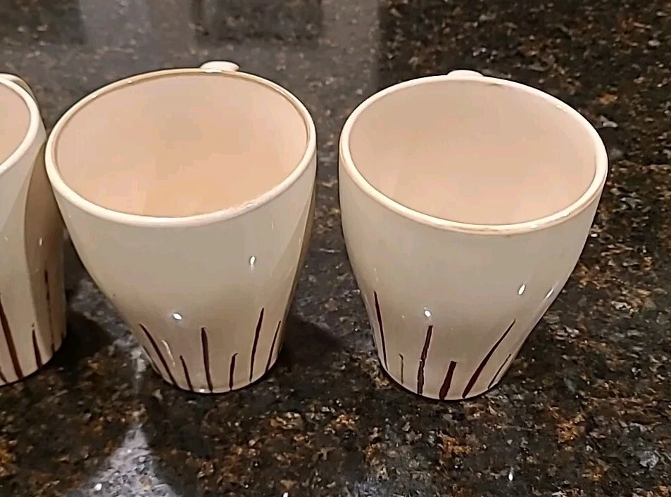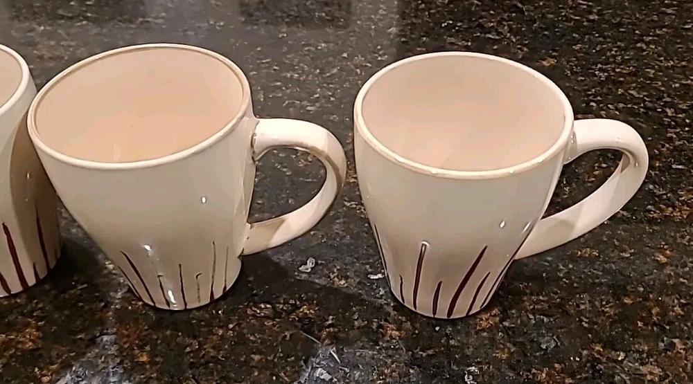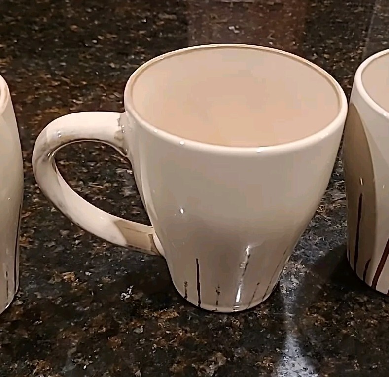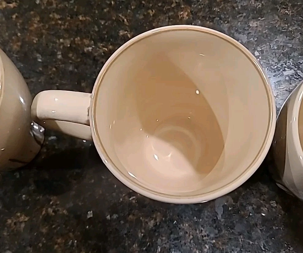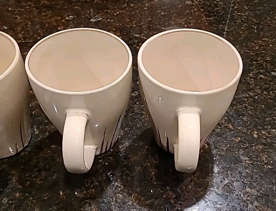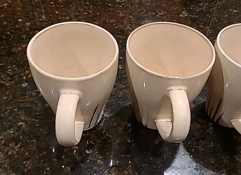 This set includes four round, 13 oz capacity coffee mugs from Pier 1 Imports in the Sanctuary pattern. Made of heavy stoneware, each mug has a neutral color design and is microwave and dishwasher safe. With a glossy finish, these mugs are suitable for hot beverages and have a printed backstamp. Perfect for all occasions, these Pier 1 coffee mugs are a stylish addition to any kitchen or dining set. Mugs are used, but in great condition. No cracks, crazing or chips. No stains. Some clear scratches from use. See images. Shipping cost is for USPS Ground Advantage. Package may be upgraded to UPS Ground, or a faster delivery method with USPS, depending on cost and availability. ________________ Please review all photos carefully and feel free to reach out with questions. It's our goal to provide an accurate description of items to meet or exceed your expectations. We ship quickly and pack thoroughly, taking extra time and using good/enough materials to ensure safe delivery of purchases.