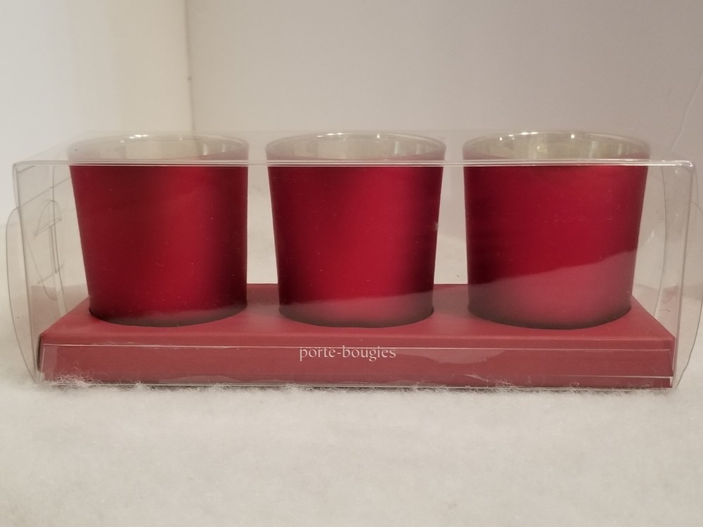 | Features | PIER 1 IMPORTS GLASS FROSTED RED CANDLE HOLDERS |