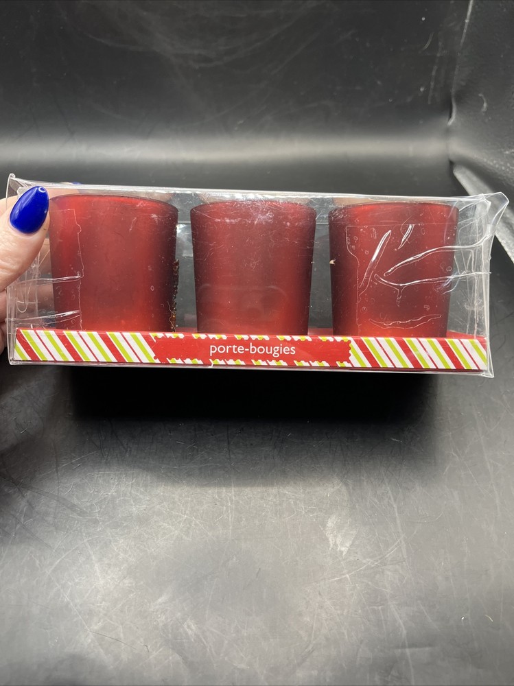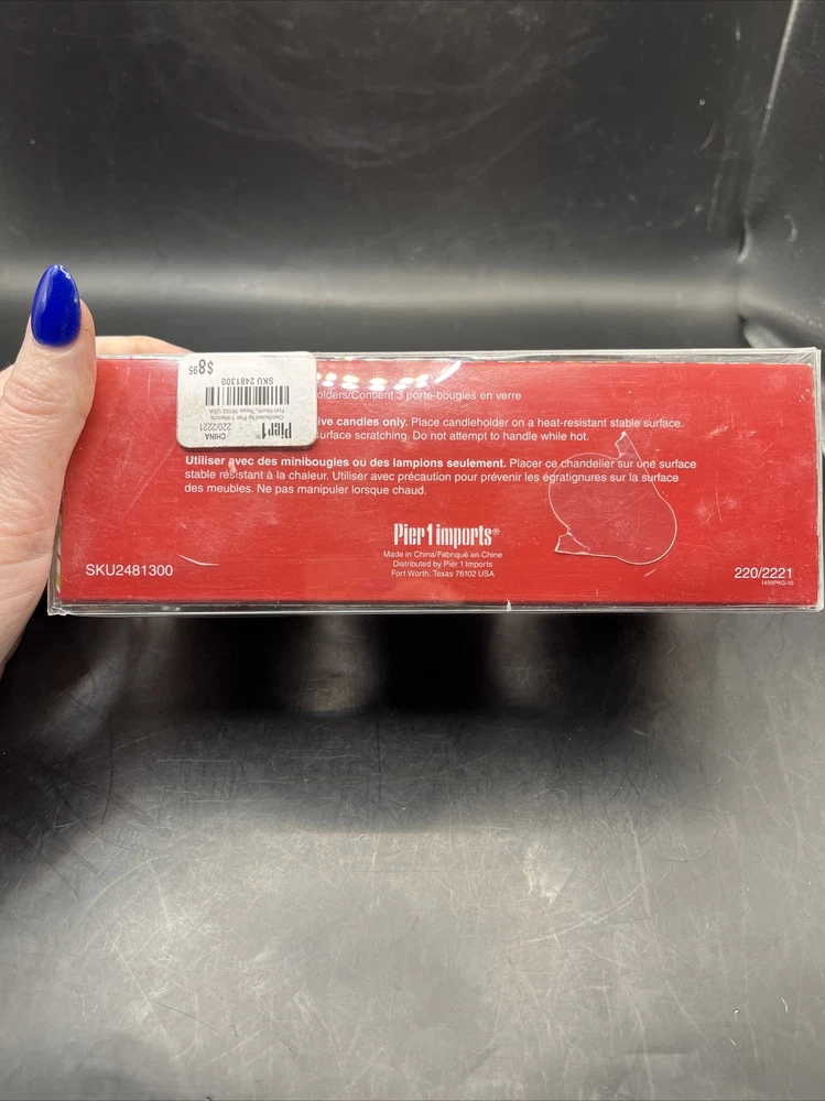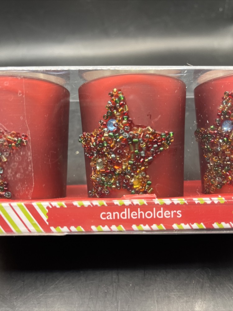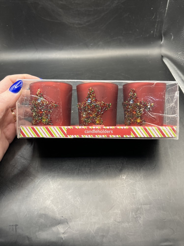 Add a festive touch to your Christmas decor with this set of 3 Pier 1 Imports Glass Frosted Red Candle Holders. The star-shaped holders are made of high-quality glass and feature a bead design that adds elegance to any space. The beautiful multicolor finish enhances the look of the holders and makes them a perfect addition to your holiday collection. These candle holders are ideal for creating a warm and inviting atmosphere during the Christmas season. They are a great choice for those who love collecting decorative items for their homes. Get your hands on this exquisitely crafted set of candle holders today and enjoy the beauty they bring to your home. Open box