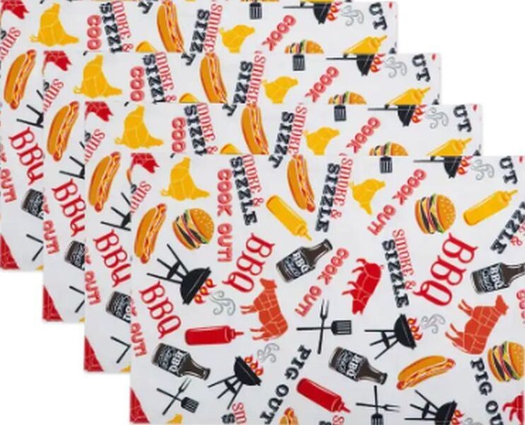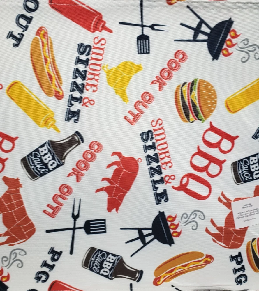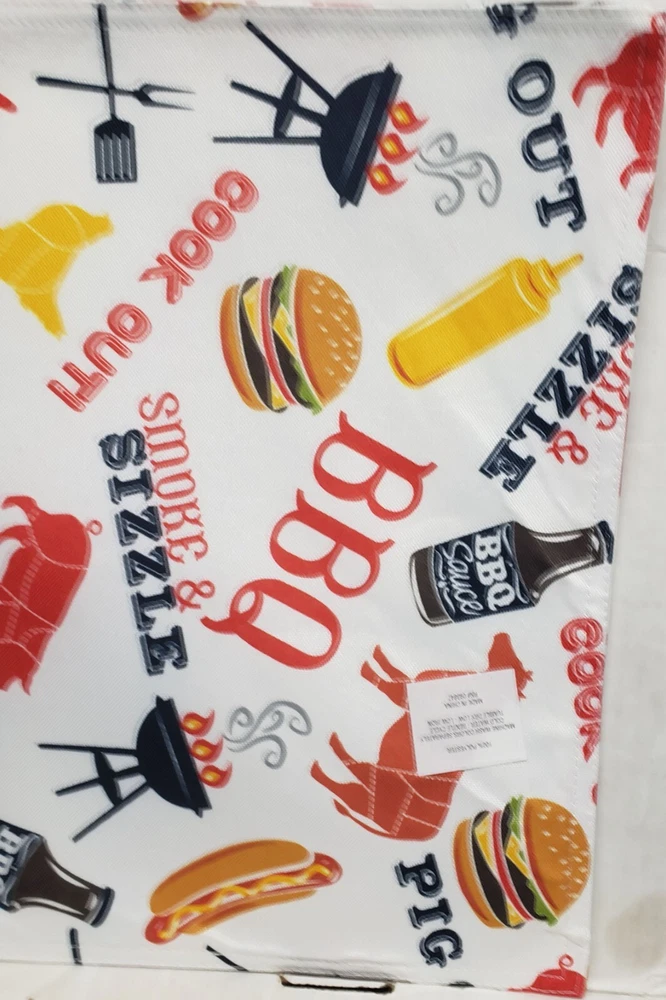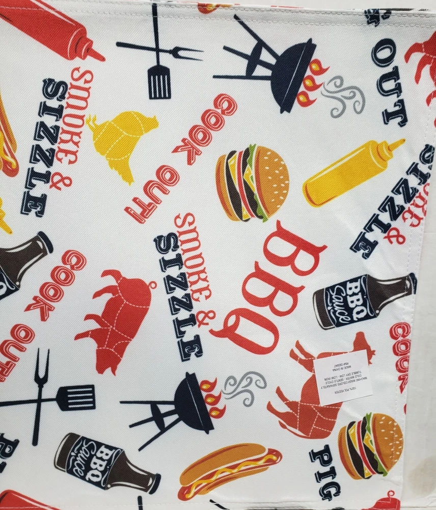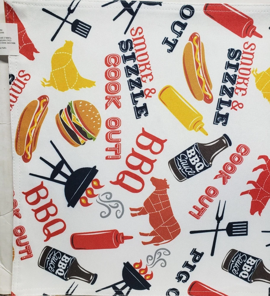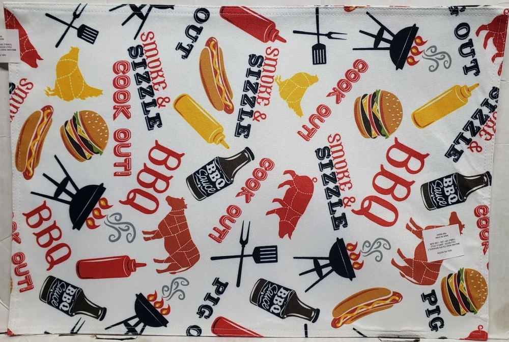 I'm selling a Set of 4 Same Fabric Cotton Placemats (approx. 13" x 19") SUMMER PICNIK, COOK OUT, BBQ ITEMS as seen on pictures. Machine wash. Brand new, in the original package. Made by Design Imports in China. 100% Polyester. I may have a matching tablecloth & table runner. Please check out my other listings, and if you buy multiple items, please contact me and I will find out how I can combine your shipping I ship to USA only (or internationally using Global Shipping)