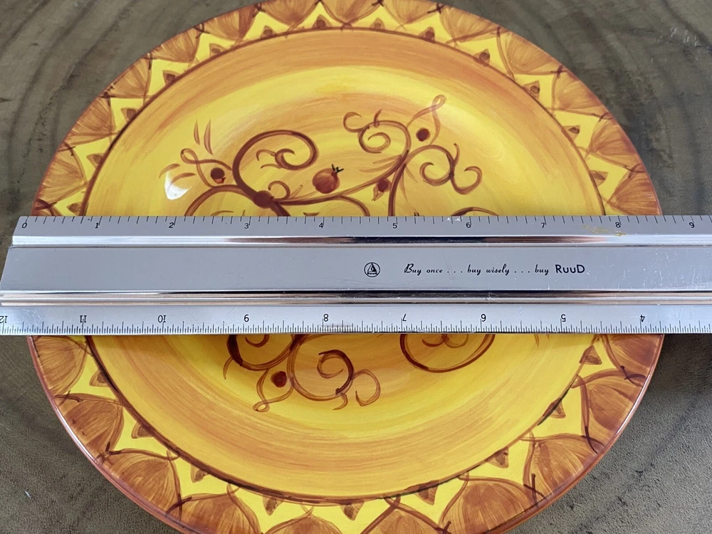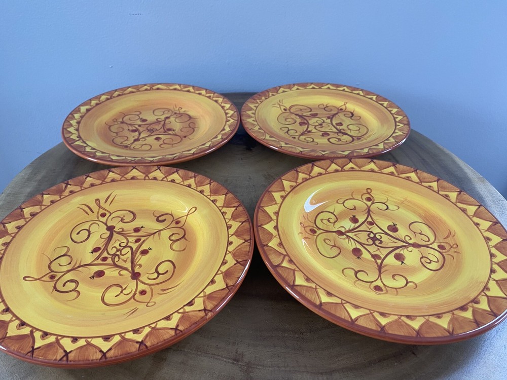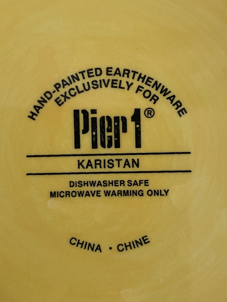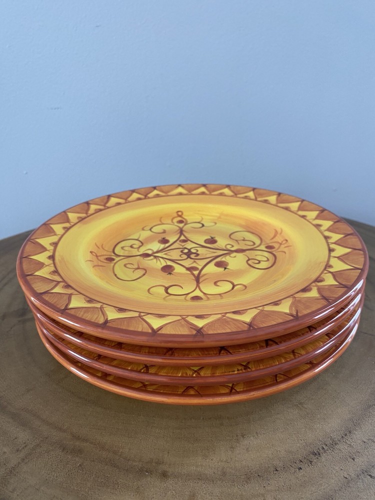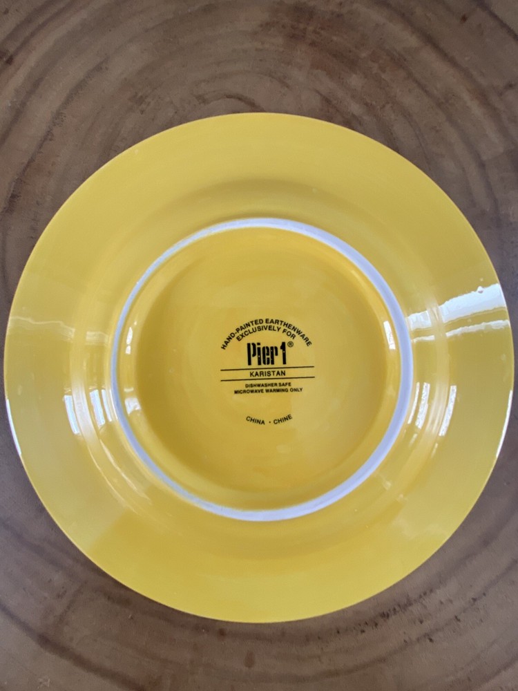 SET OF 4 - Pier 1 KARISTAN Earthenware Salad Plates Hand Painted 8.75" Yellow. No chips/cracks/crazing. Excellent condition!...