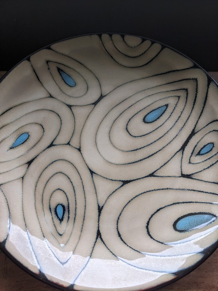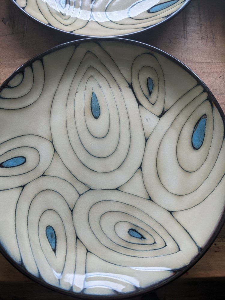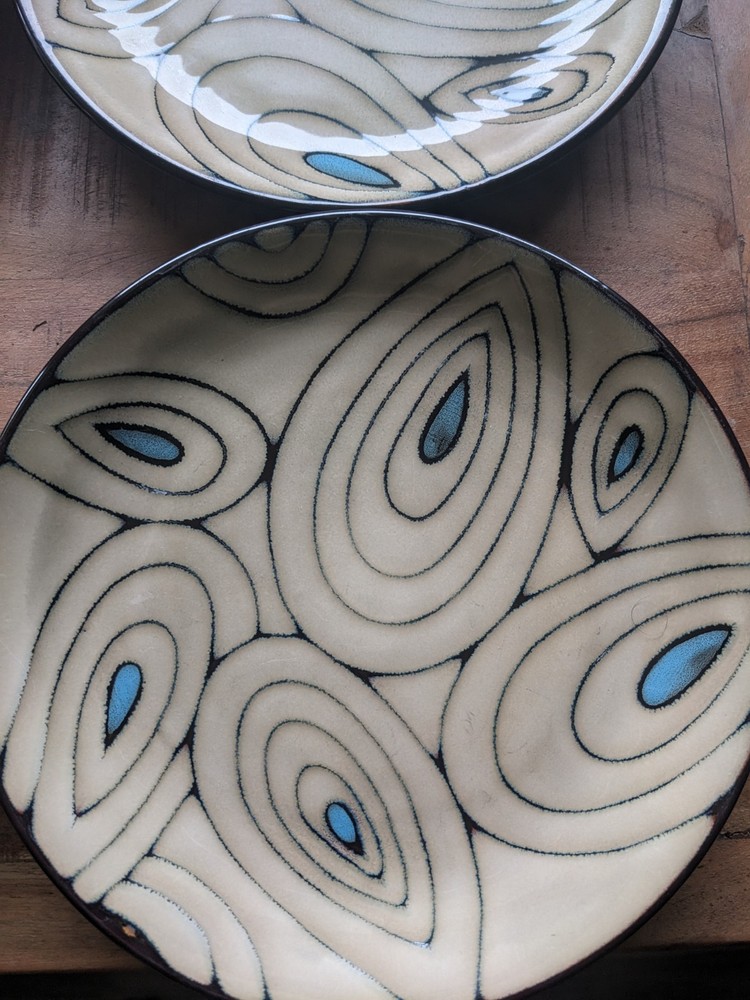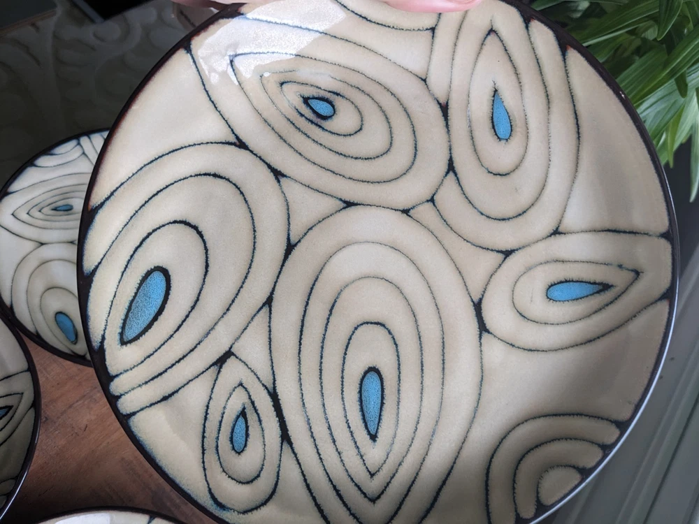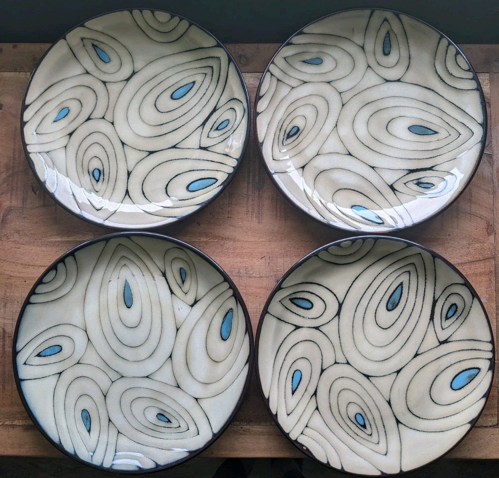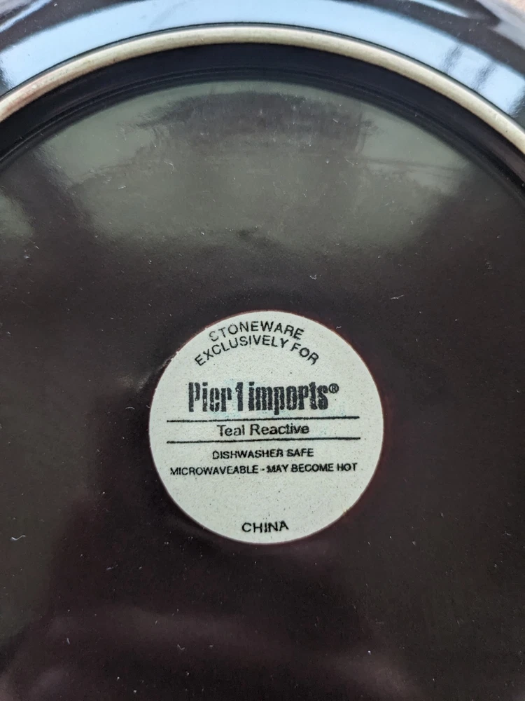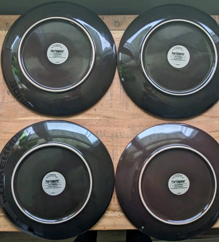 PIER 1 Import Teal Reactive Retired Set of 4 Salad Plates 8” Stoneware, good used condition, please see all pictures for condition and wear.