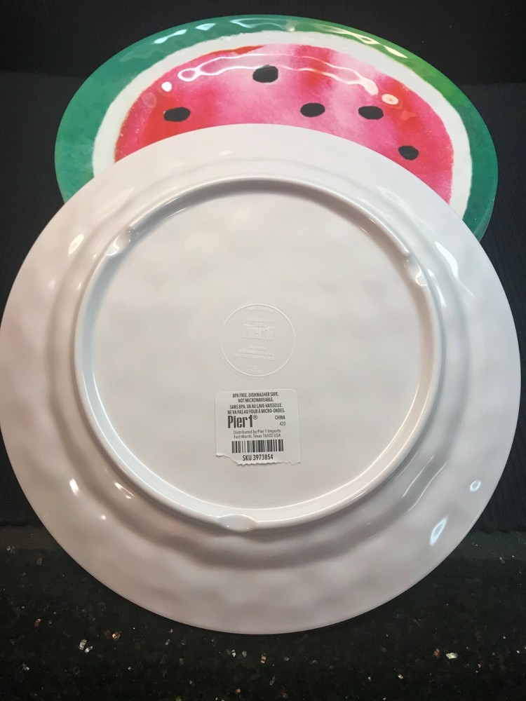 💙 PIER 1 IMPORTS 💙 Set of 6 - 9" Melamine Plates YOU WILL RECEIVE 6 PLATES These are the High End Melamine Sets Exclusive to Pier 1 Watermelon Design / Gorgeous Color Adds Richness & Depth Brand New/ Partial sticky tags still present Free shipping to continental US street addresses. No P.O. Boxes Payment expected within 3 days of purchase eBay's Global Shipping Program also available