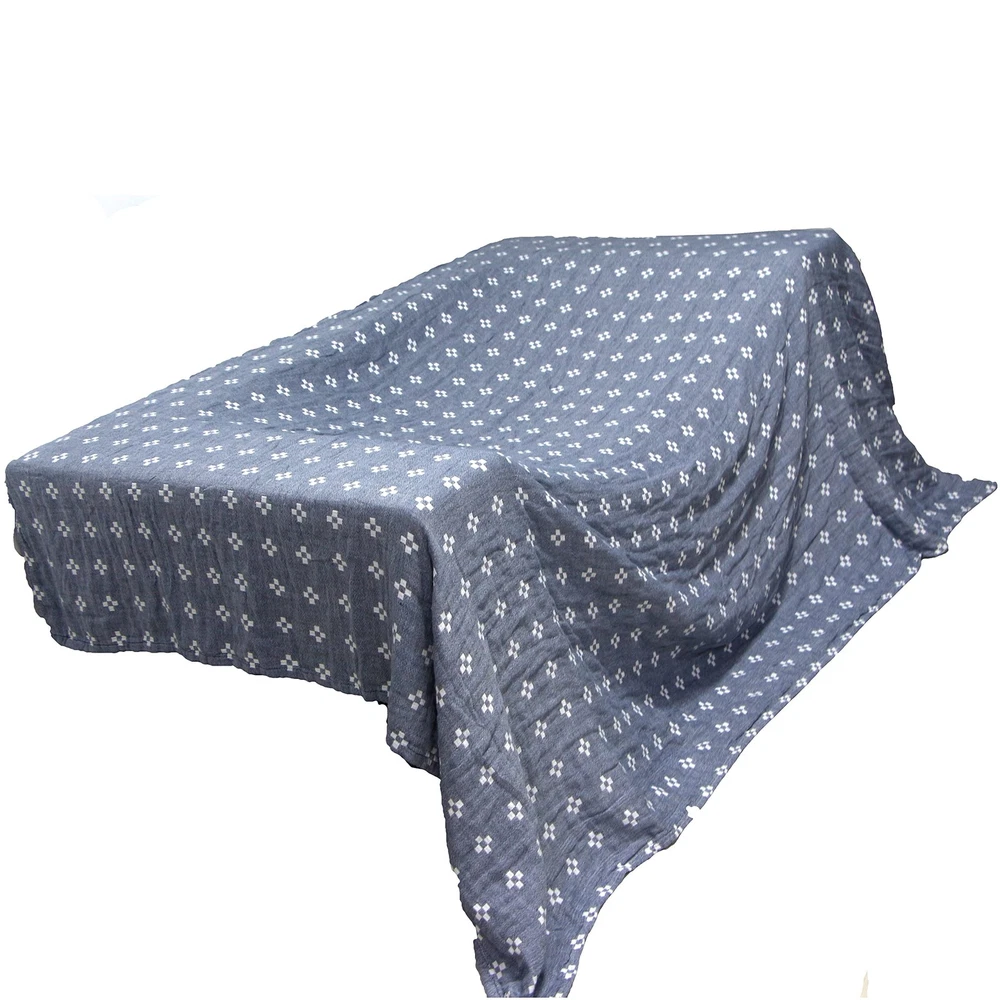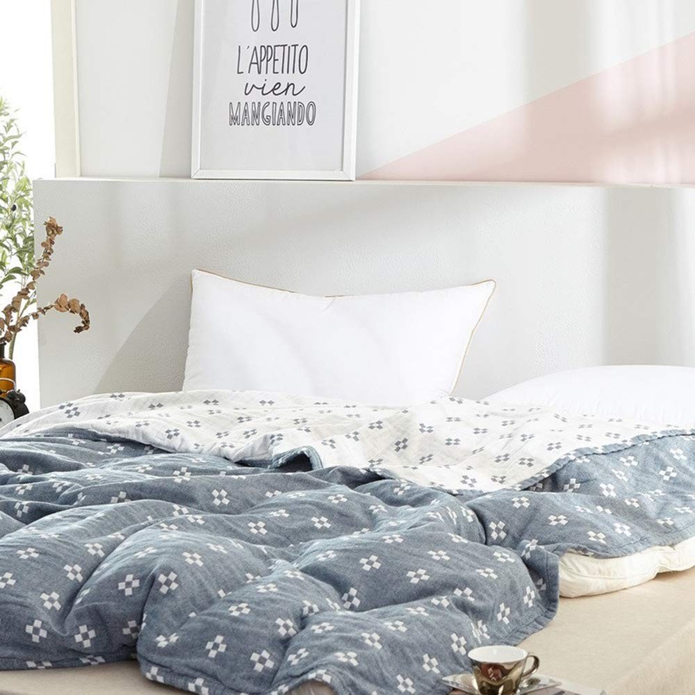 3 layer Cozy Lightweight Muslin Cotton Blanket,With Pattern,Blue,Twin 59''X78'' 2 Layer cozy Lightweight 100% Muslin Cotton Blanket With Pattern,Blue,Twin 59''X78'' Woven blankets have different patterns on both sides of ab and can be used on one side according to personal preference Comfortable cotton fiber, durable, skin friendly. Very comfortable helps you sleep Comfortable air permeability, sweating absorption, machine washable with high color fastness, will be softer after washing