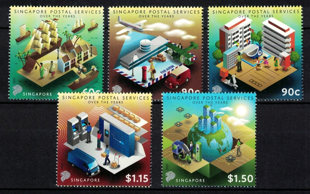 SINGAPORE 2023 POSTAL SERVICES OVER THE YEARS COMP. SET OF 5 STAMPS IN MINT MNH UNUSED CONDITION. Don't miss this great item for your collection. Please refer to the picture for the sample item(s). Shipping and Handling to the Worldwide by First Class Airmail - Buyer pays $2.00 for the first item and $0.20 as each additional item. If you wish to purchase multiple items and to combine shipping, please wait for our billing with revised postage. Check out our other listed items at our eBay store - starlightcity99 We are unable to cover all aspect of this listing, please send us a message if you have any questions. Track Page Views With Auctiva's FREE Counter