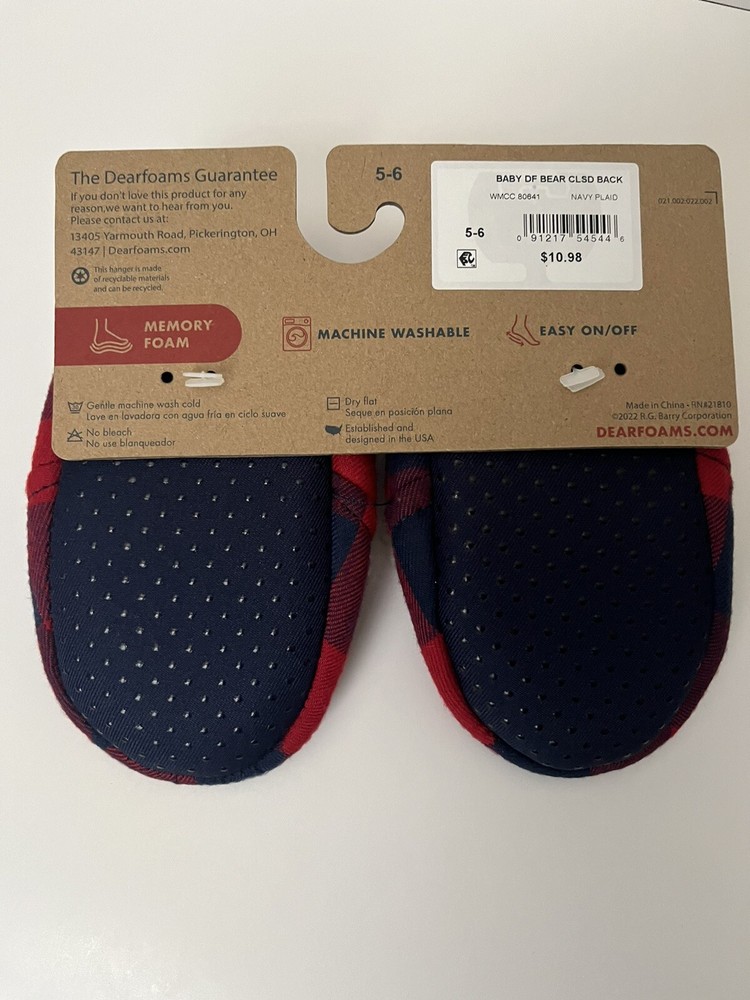 SLIPPERS DEARFOAMS COZY COMFORT BABY BEAR PLAID SLIPPERS SIZE 5/6. Shipped with USPS Ground Advantage.