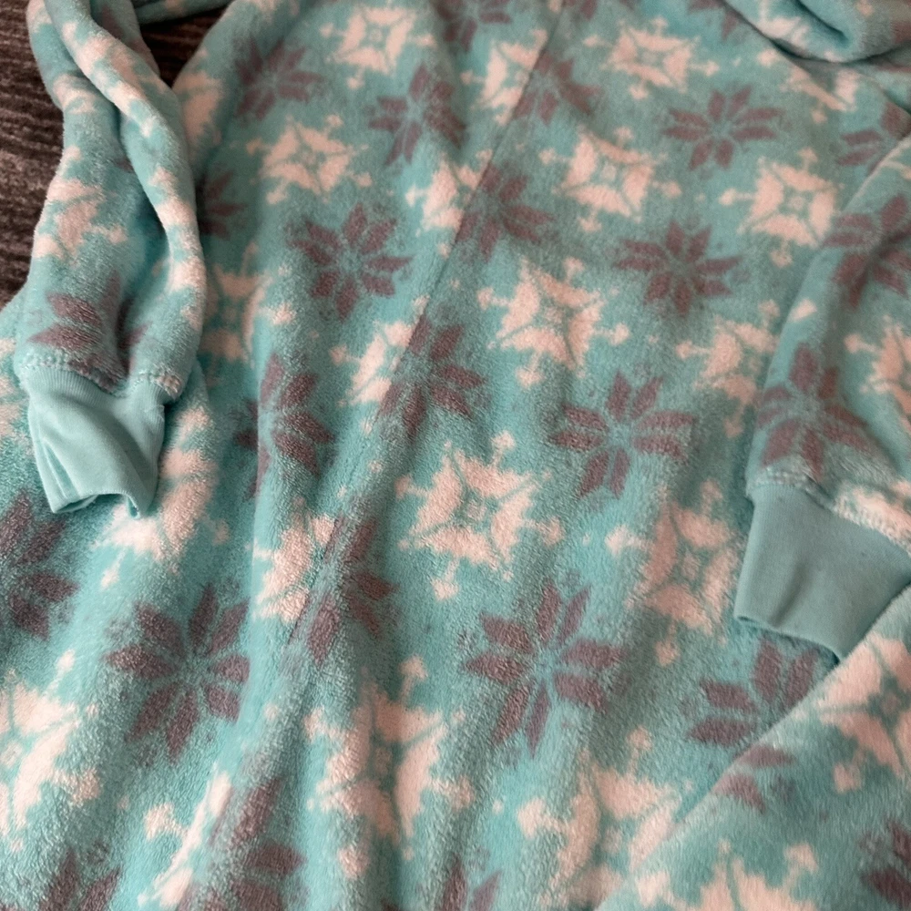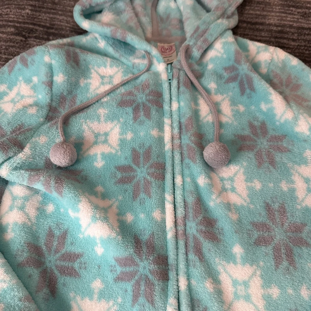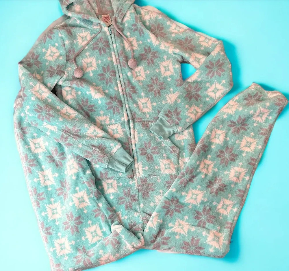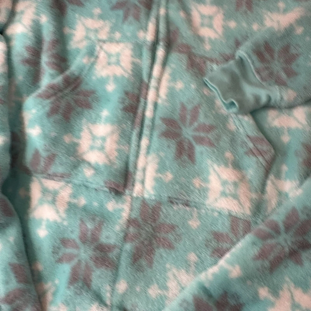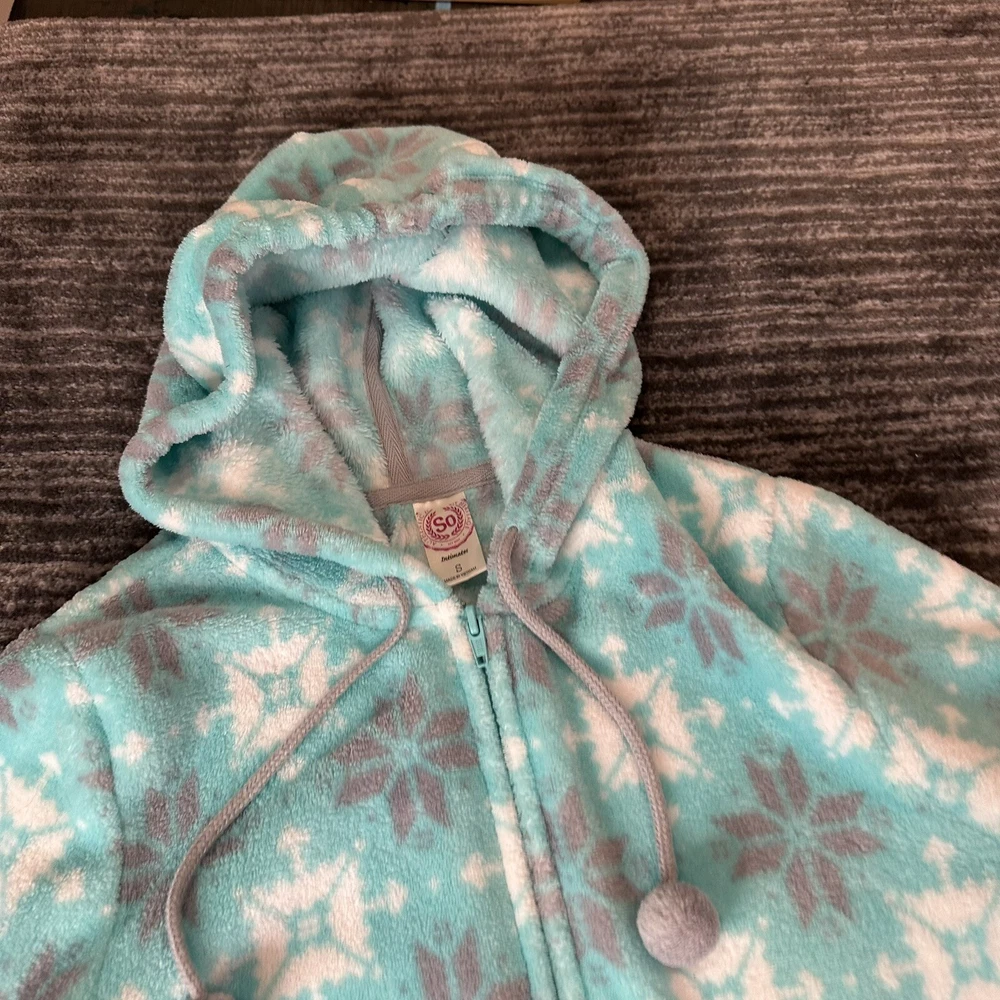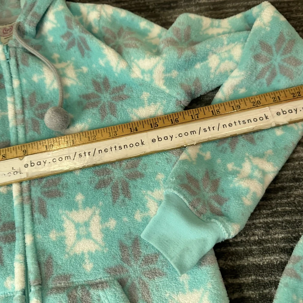 Get cozy this winter with this beautiful Fair Isle patterned one-piece pajama by SO. The long-sleeve and hooded design with a zipper closure ensures comfort and warmth. The pre-owned garment, sized small, comes in a beautiful blue color with snowflake accents, perfect for the winter season. Machine washable for easy care, this one-piece is perfect for lounging and sleeping. Item is Preowned but in great condition with little to no signs of wear. No holes or stains. See pictures for details and measurements. Ships out fast! Ships daily from U.S. l bundle shipping with other items from my store upon request. eBay.com/str/nettsnook