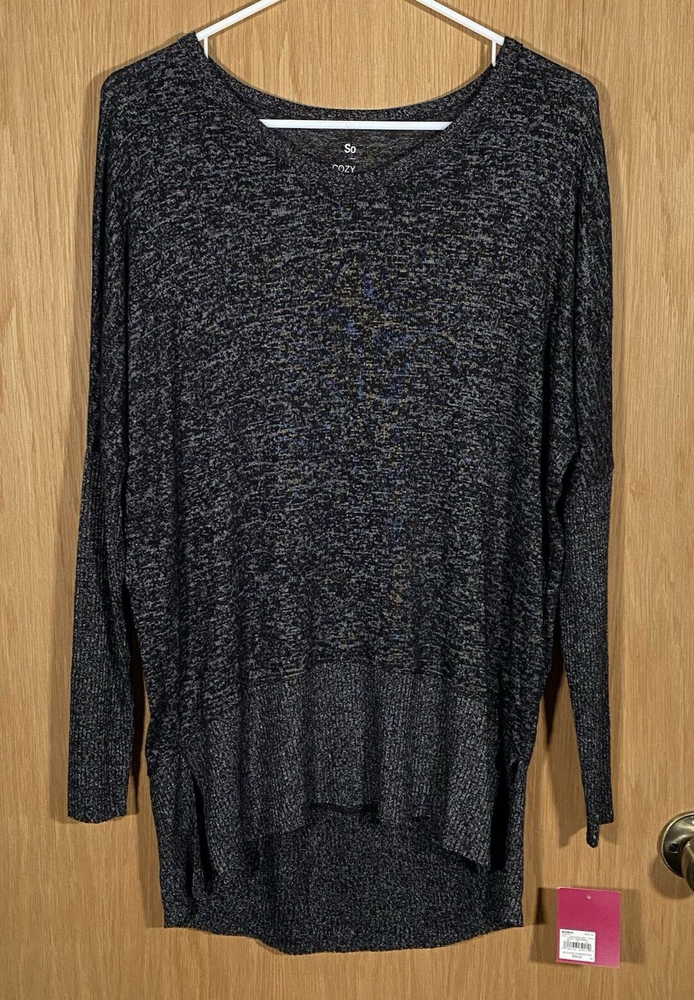 SO Cozy Tunic Knit Long Sleeve Jersey Knit Marbled Dark Gray Soft Athleisure XS. Condition is Brand New. Please see all pictures for measurements and ask any questions before purchase. Item is stored in a clean smoke free environment. Thank you so much for shopping my store. I do offer combined shipping on all items. Shipped with USPS Ground Advantage.