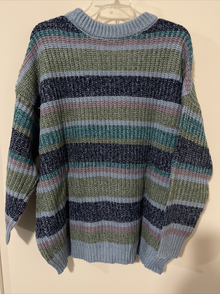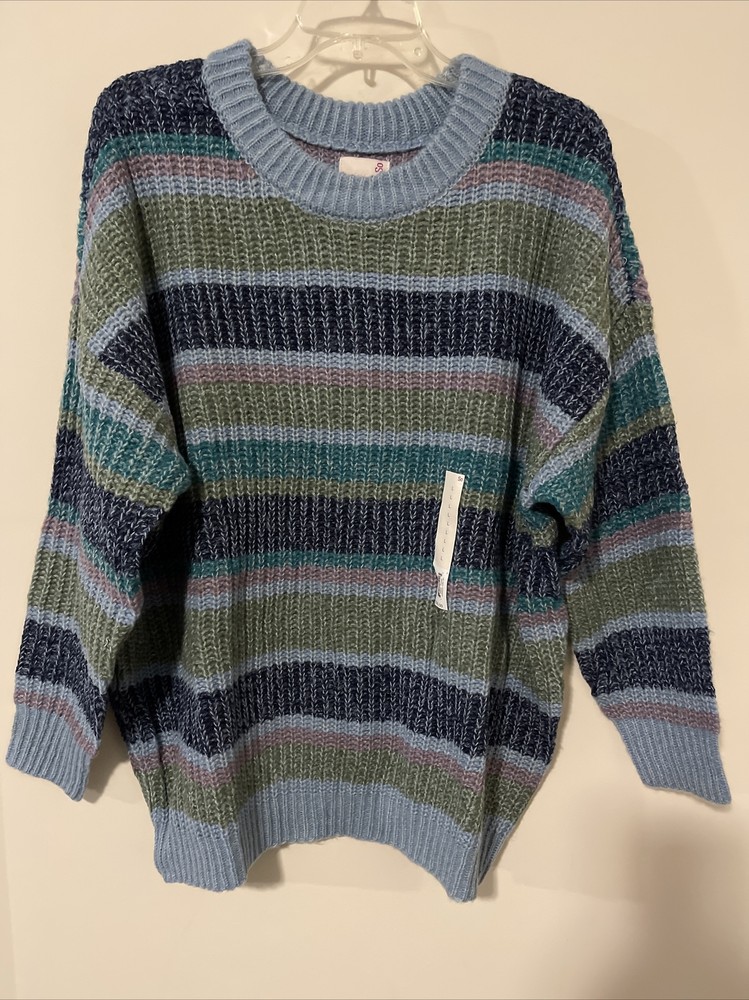 SO Womens Large Green Oversized Pullover Knitted Type Cozy Sweater NWT! A3503. This is a beautiful super soft cozy sweater in absolutely perfect brand new condition! It is oversized and sooo warm. The length from shoulder to hem is 30 inches. The bust measures 50 inches. The material is an acrylic and polyester blend.
