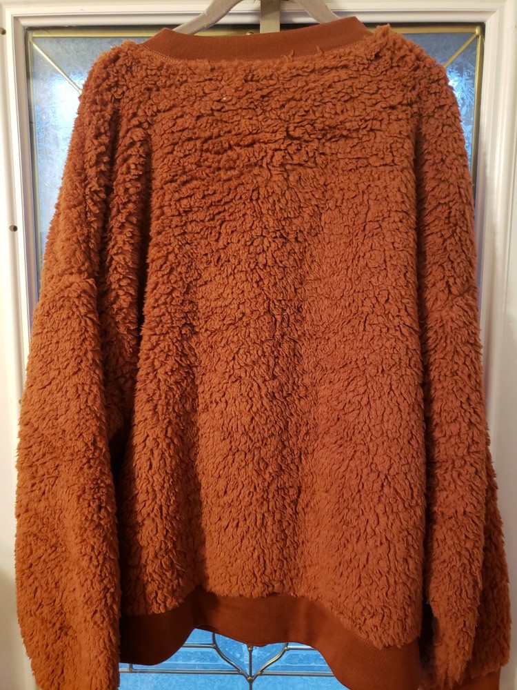 LAST ONE! COZY WARM COCOA XL 16/18 56" Bust This Secret Treasures lounging top is perfect for those chilly summer nights or as a cozy cover-up for the beach. With a faux fur look pattern in cocoa color, this long sleeve top is made from soft and comfortable polyester material. It comes in a size type of regular and a large size of 16/18 with a 56" bust measurement. This lounging top can also be worn as a chic nightwear or for lounging at home. The style is versatile and can be paired with any bottoms. Get this lounging top now and enjoy its comfort and style.