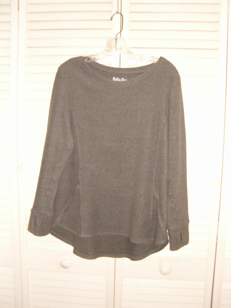 PAYMENTS ARE DUE AT AUCTION END WE SHIP ONCE A WEEK ONLY THANK YOU PLEASE READ ALL DESCRIPTIONS PRIOR TO BIDDING WE SHIP TO US ADDRESSES ONLY NO APO OR FPO NO GLOBAL SHIPPING PLEASE ASK ALL QUESTIONS PRIOR TO BIDDING THANK YOU ALL SALES ARE FINAL SMOKE AND PET FREE HOME SOFT & COZY GRAY FLEECE SUPER CUTE AND COMFY TOP MEDIUM ROUNDED HEM WITH UPDATED DETAIL THUMBHOLES FIGURE FLATTERING HI LO STYLE SEE PHOTOS FOR GREAT DETAIL PLEASE SEE MEASUREMENTS FOR A GOOD FIT UNDERARM TO UNDERARM THE KNIT TOP MEASURES ABOUT 21 INCHES NICE STRETCH SHOULDER TO HEM MEASURES ABOUT 25-28 INCHES THANK YOU FOR LOOKING