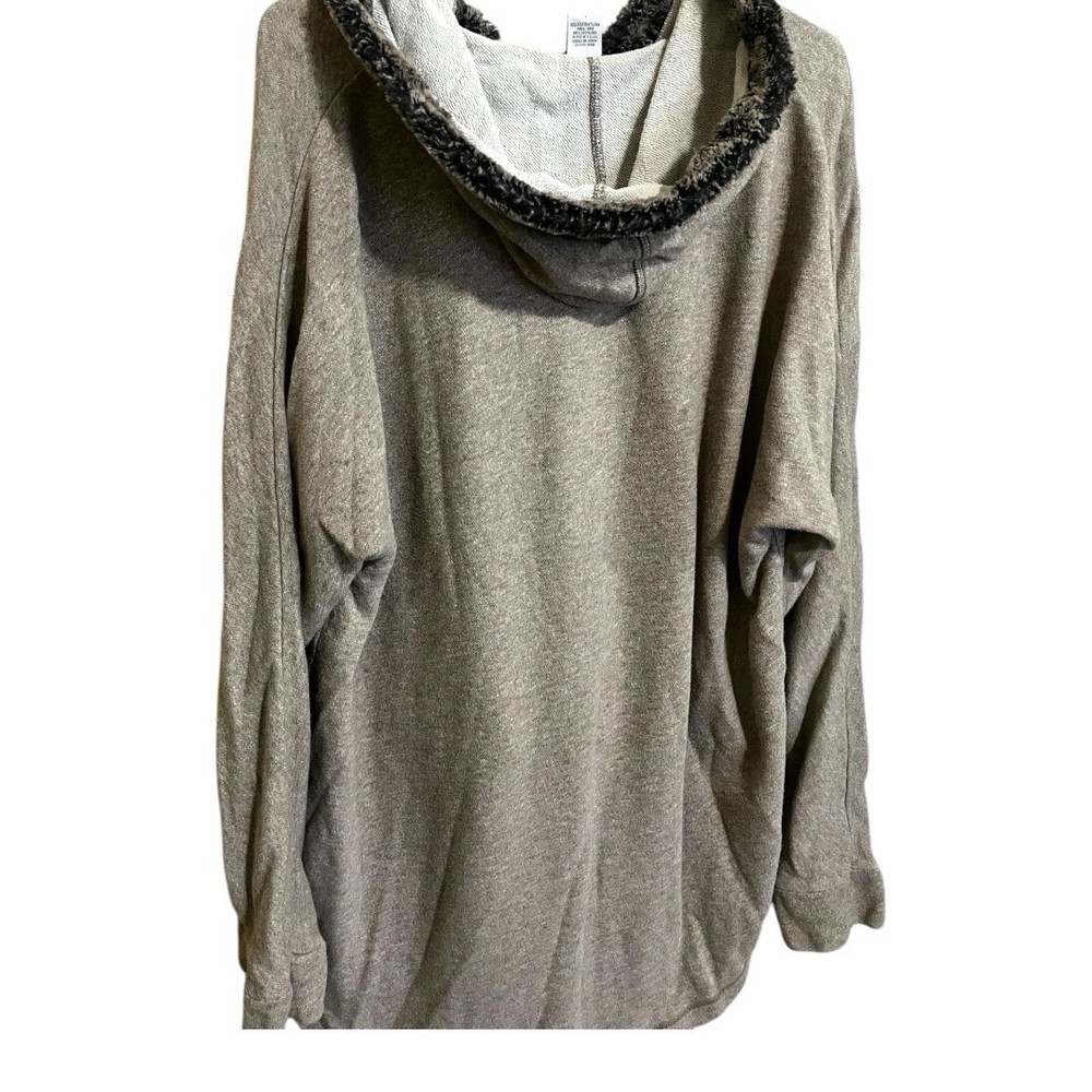 SOFT SURROUNDINGS Oatmeal Cozy Cabin Cuddle Up Fur Trim Hoodie Tunic Sweater L...