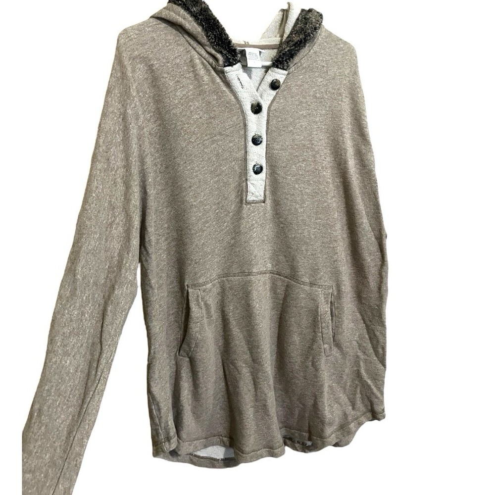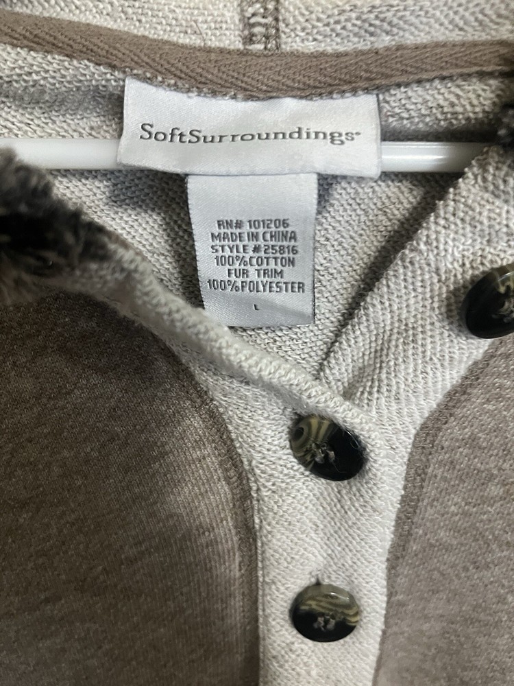 SOFT SURROUNDINGS Oatmeal Cozy Cabin Cuddle Up Fur Trim Hoodie Tunic Sweater L