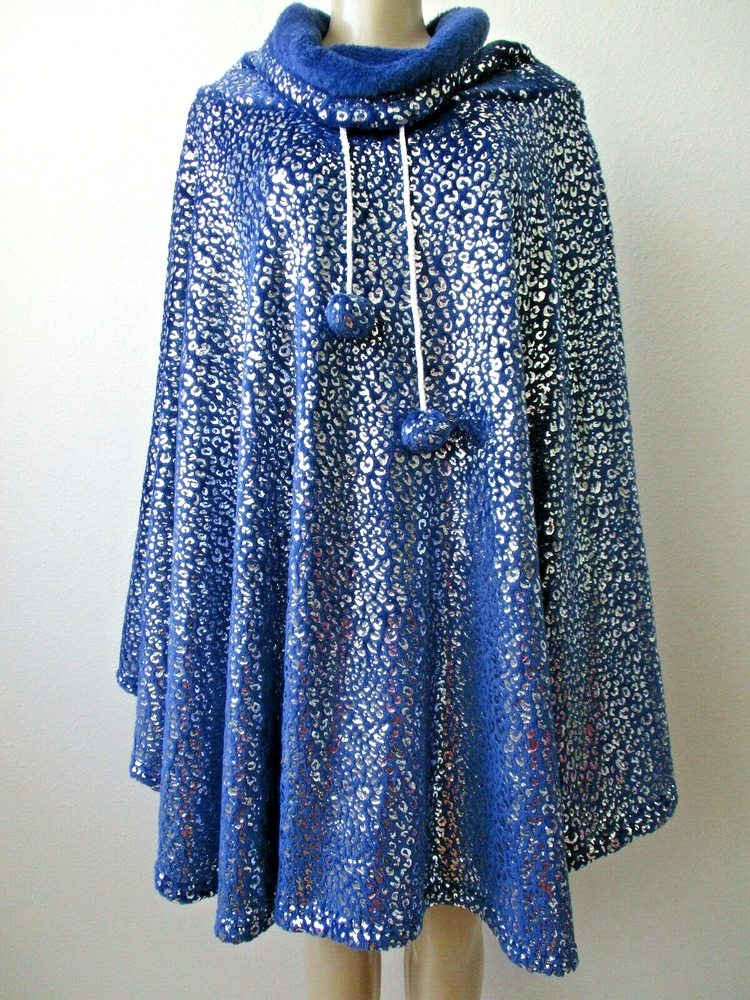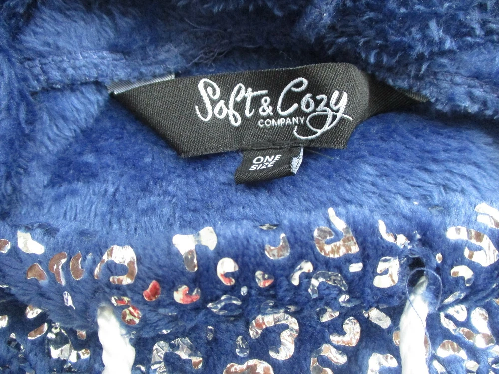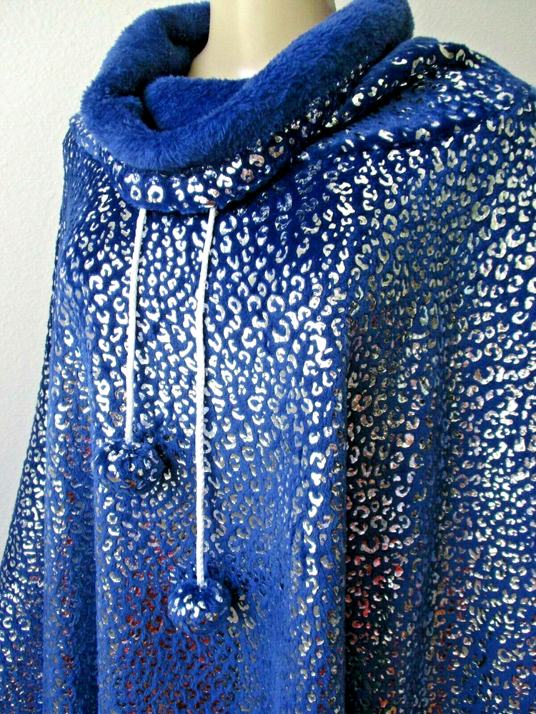 SOFT&COZY COMPANY BLUE & SILVER FAUX FUR WRAP/PONCHO * BRAND - SOFT&COZY * SIZE - ALL ONE SIZE * LENGTH - 33 1/2" * MATERIAL - 100% POLYESTER * COLOR - BLUE & SILVER * NO POCKETS * CONDITION - NEW * DRY CLEAN ONLY * MADE IN CHINA
