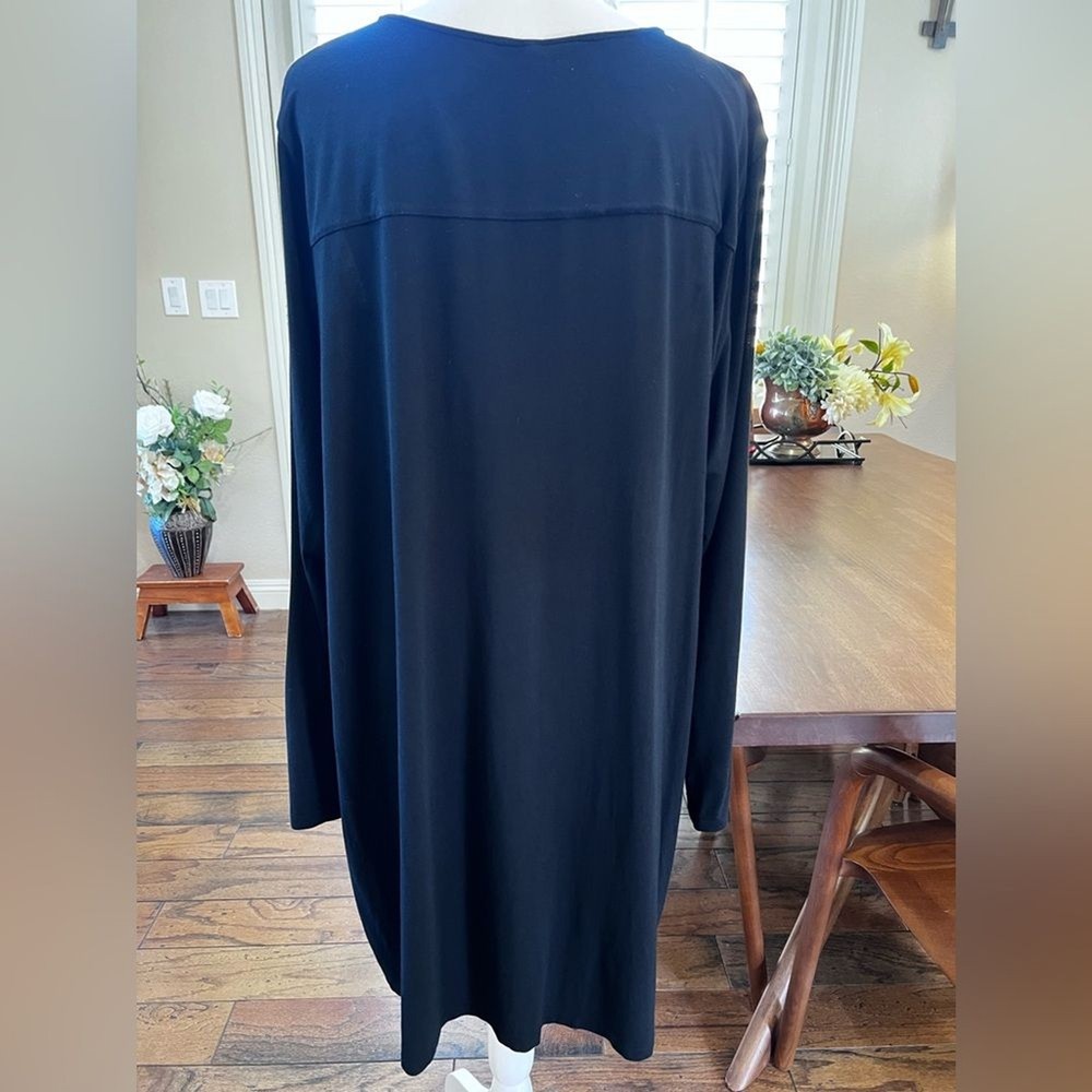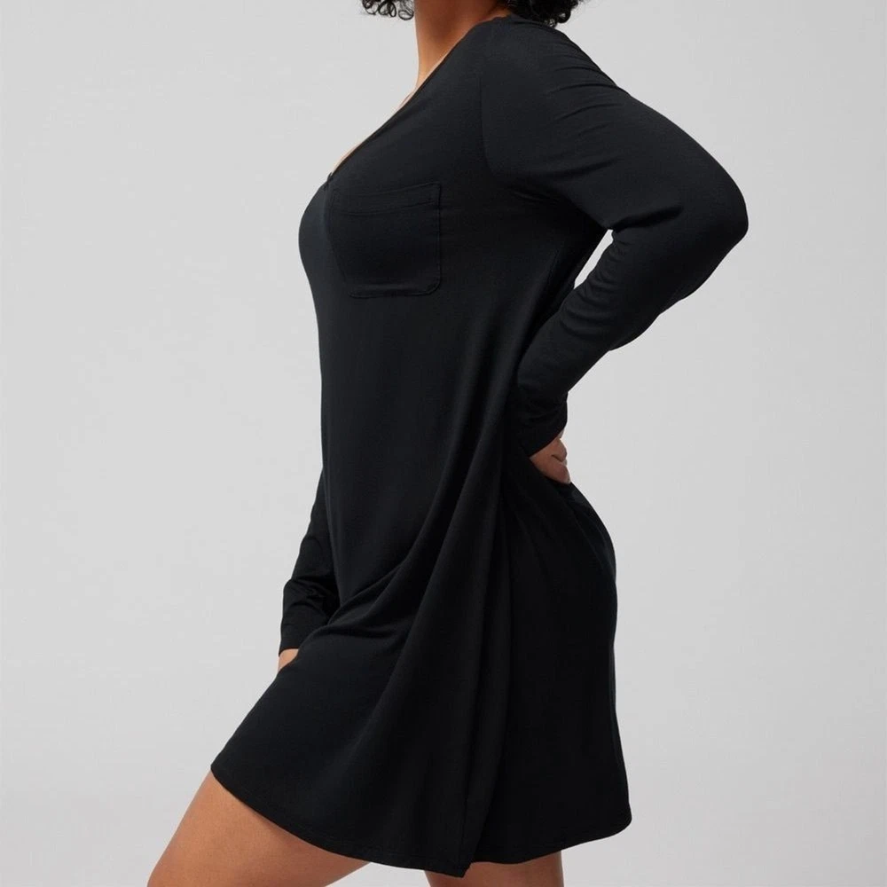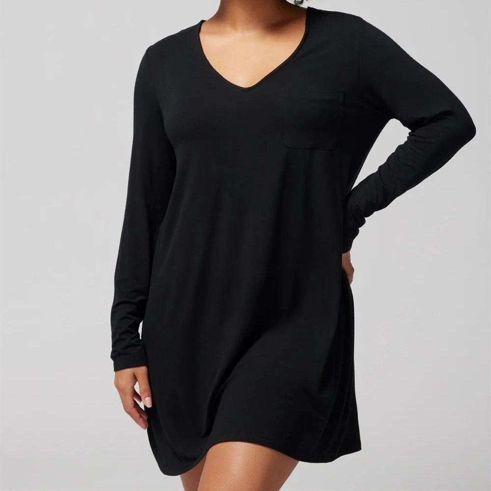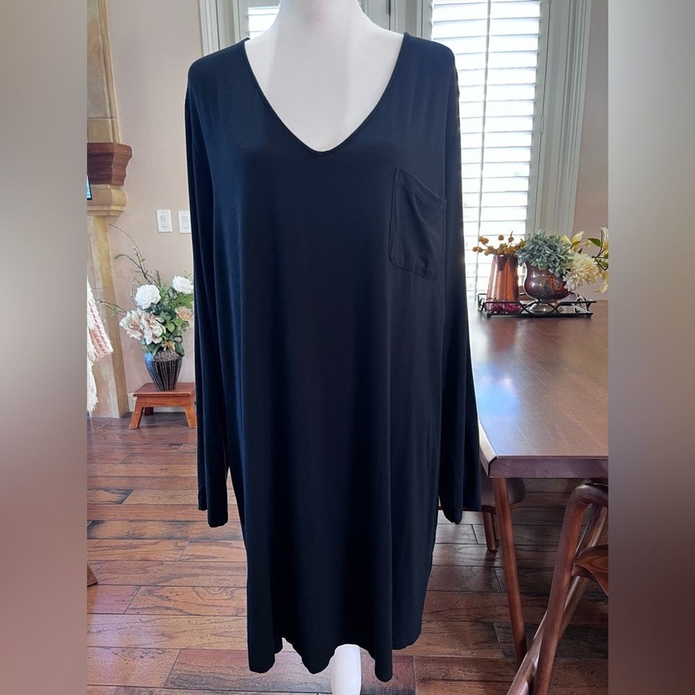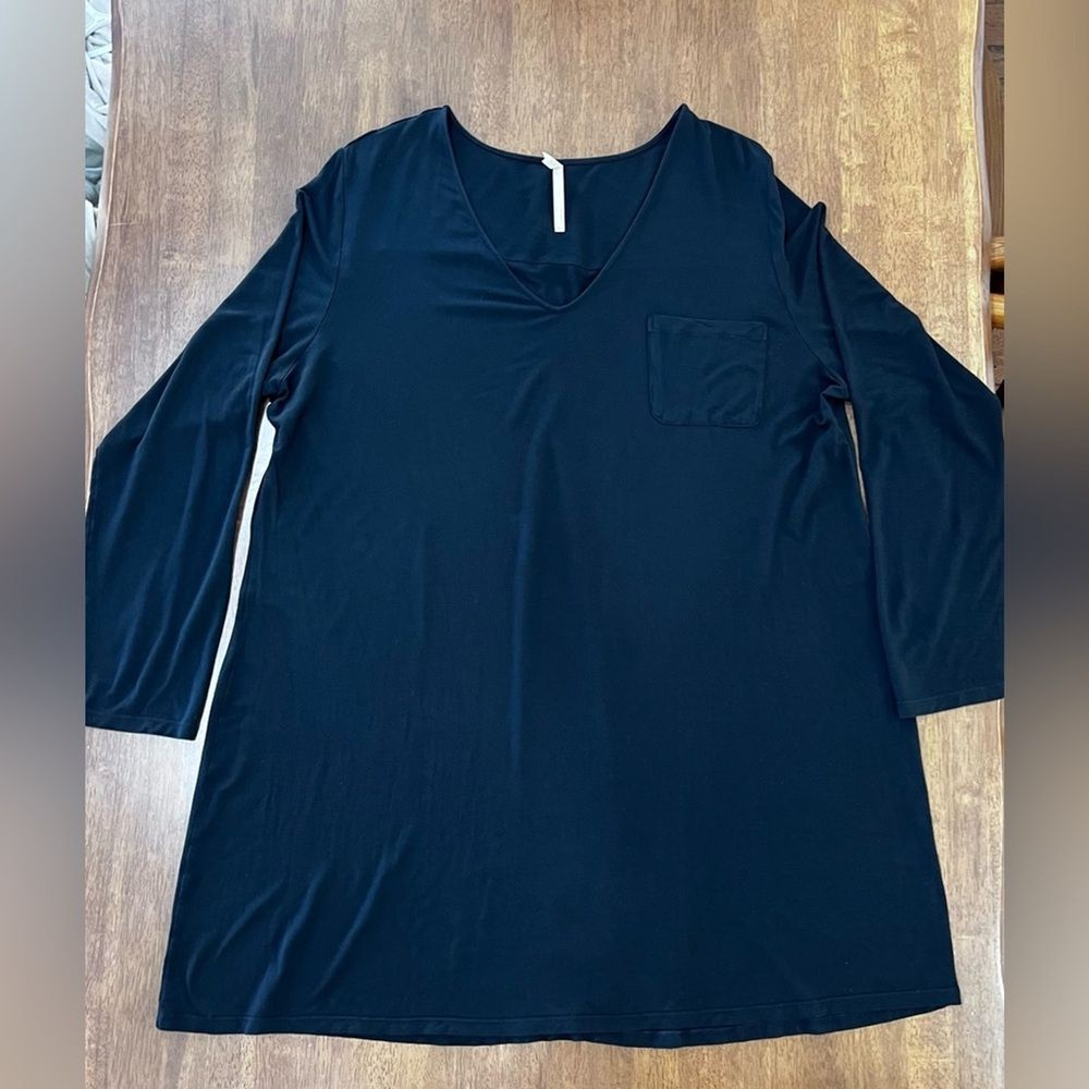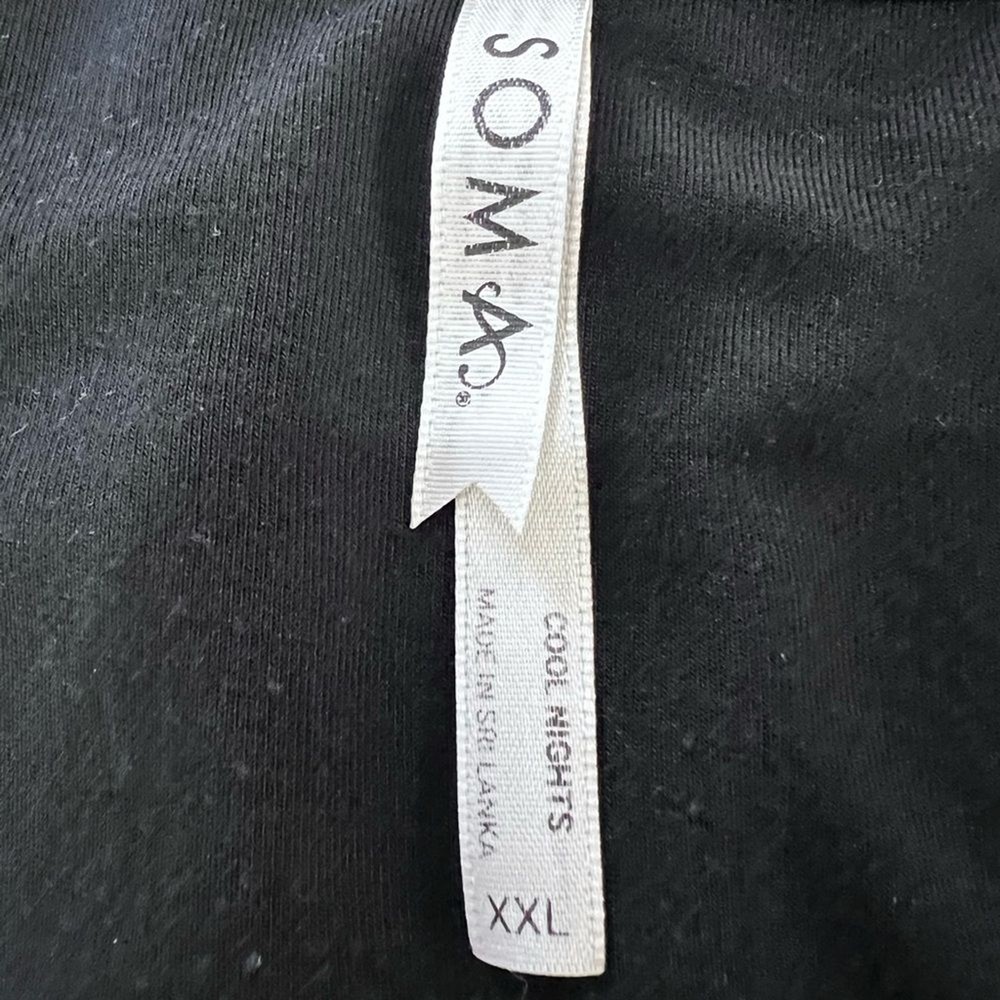 SOMA COOL NIGHTS Long-Sleeve Sleepshirt, Black Strechy Comfy XXL Loungewear Soft When you want your arms covered but your legs free, this long-sleeve sleepshirt is the ultimate pick. This classic silhouette is refined with thoughtful details including a flattering v-neck and chest pocket. Crafted with our bestselling Cool Nights fabric, you can sleep well with the cool to the touch feel against your skin. V-neck Long sleeves Chest pocket Cool Nights is made with lightweight rayon fibers that stay cool to the touch and keep the fabric from sticking to your body. 93% Rayon, 7% Spandex Machine wash cold, gentle cycle. Only non-chlorine bleach. Tumble dry low. Warm iron. Approximate measurements Pit to pit 25.5” Length 36” Sleeves 25” Shoulders 18” In good preowned condition. Minor pilling 1990