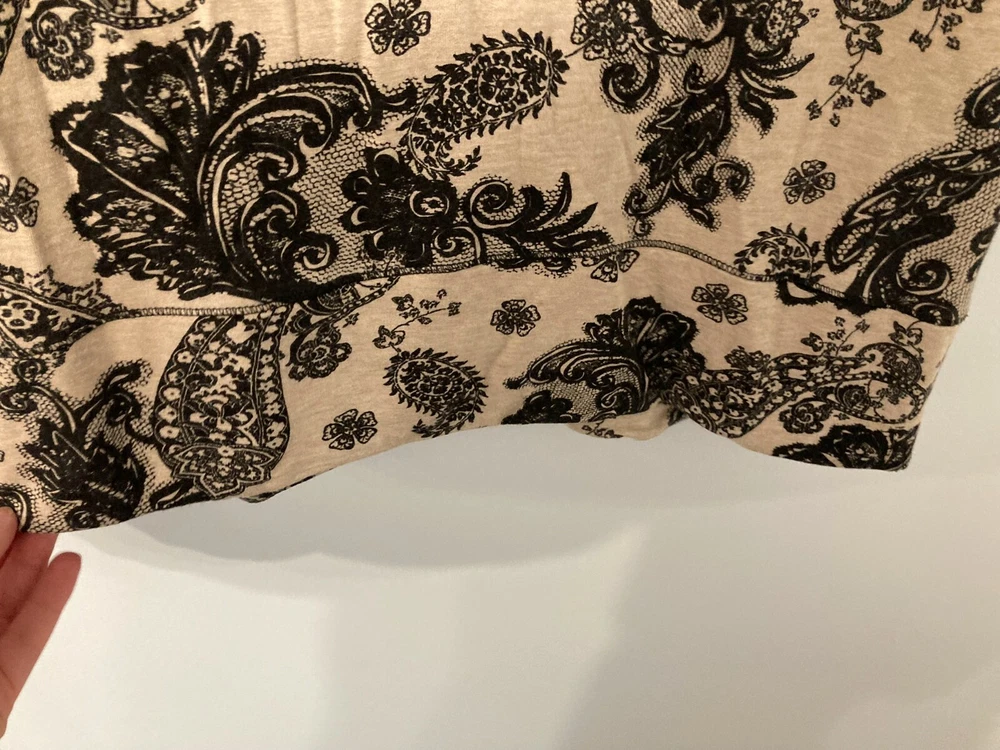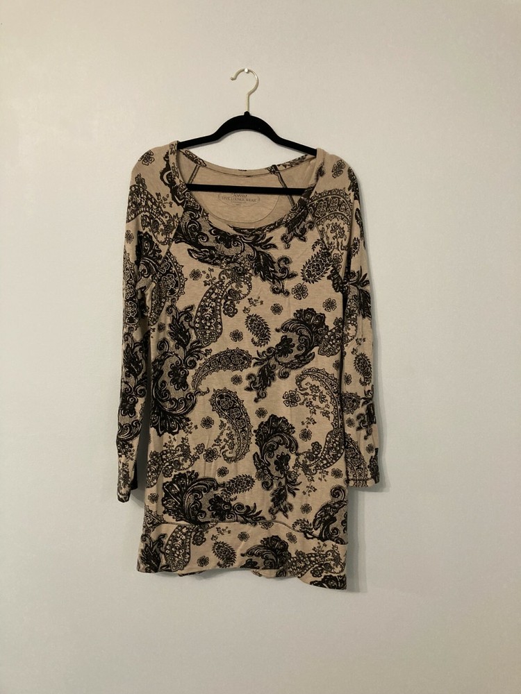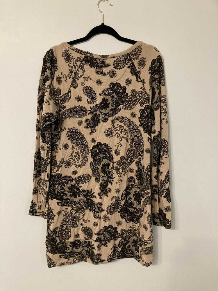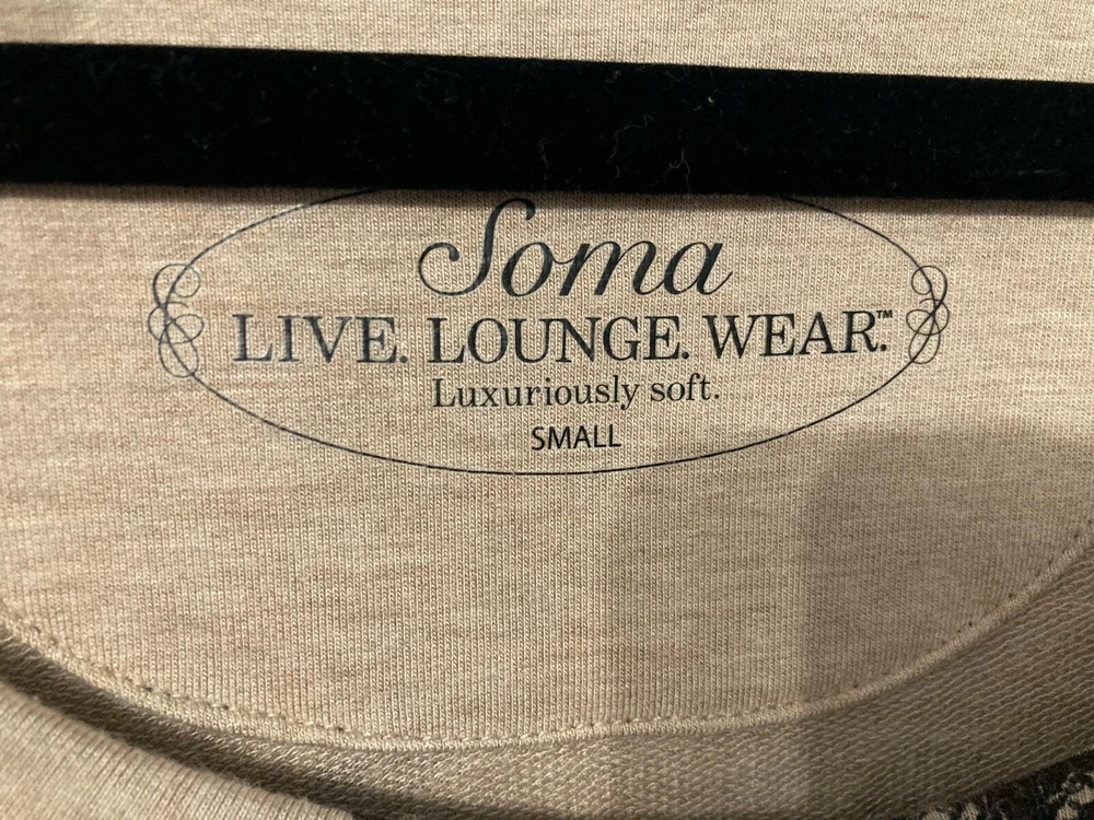 Hello and welcome to my listing! Brand: Soma - Live, Lounge, Wear Size: Small Description: - Black and tan color - Soft fabric - Long tunic length - 95% rayon/5% spandex Condition: Good, pre-owned condition Now, for the boring yet necessary fine print, with a dash of humor. - Limited measurements are available upon request with a 48 hour turnaround time. While I do enjoy math and precision, we aren't putting a man on the moon with these calculations. Because of this all measurements provided are approximate. - The pre-owned clothing I sell is sourced from a variety of places - because of this it does not come with a Carfax report. It may have been dried with heat in a dryer, washed in detergent that can be smelled from Heaven (though I do launder items), or been worn to s smoky dive bar (though, again, I do launder.) - I live with a 4 pawed, cold nosed, and loud barking rescue critter. While I make my best attempt to ensure no stray pup hair comes your way, I cannot guarantee it. - Returns - You know when your children grow up, leave home and you turn their bedroom into a craft space to get your point across they aren't returning? Well, that is how my listings work. I like to bring you nice items at great prices and because of that, I do have to enforce a final sale, no return policy. - My shipping turnaround time is 5 business days. While I do try to ship sooner if possible, I do have to walk uphill both ways to the post office and that takes time. Lastly, should you have any questions, comments, or snide remarks please feel free to send me a message.