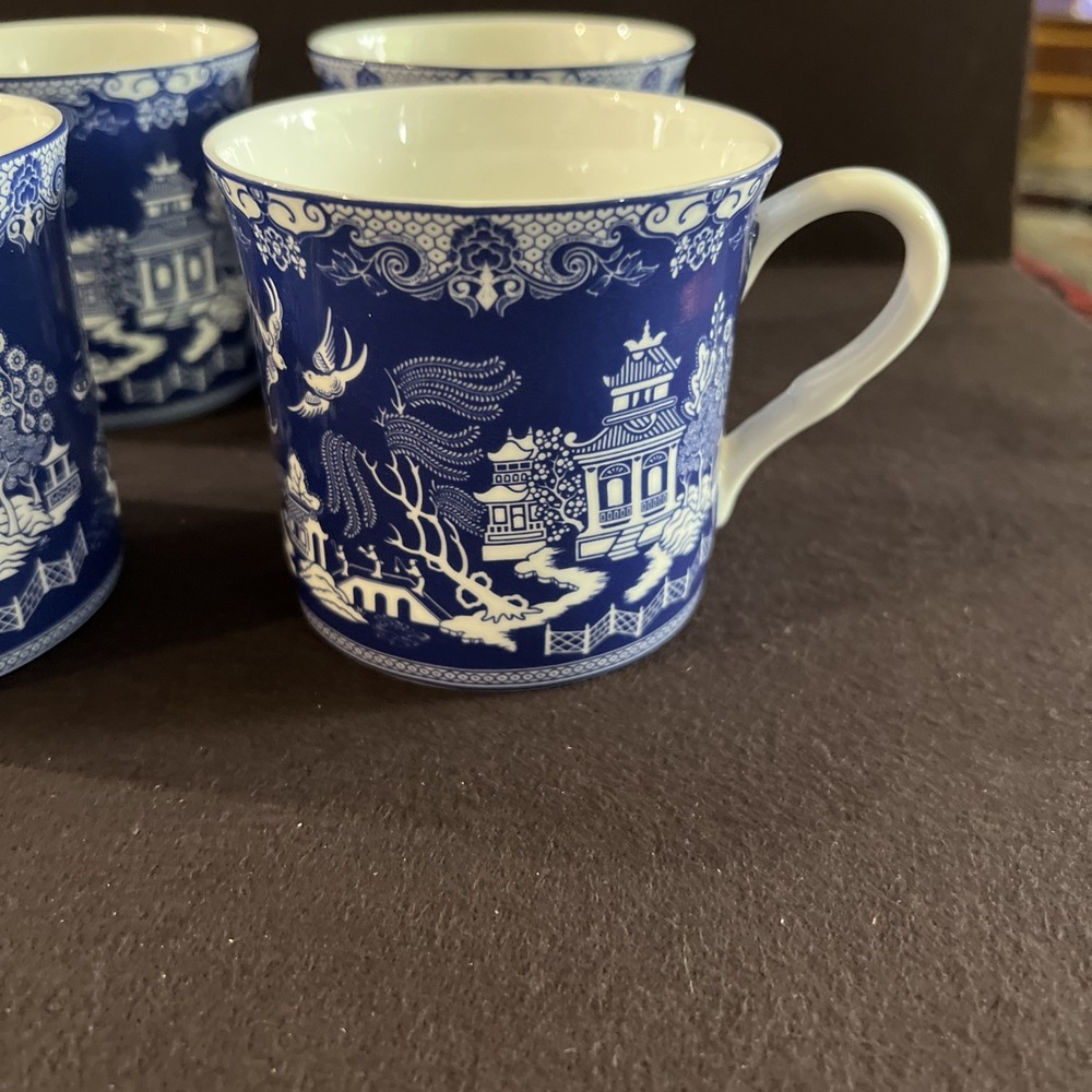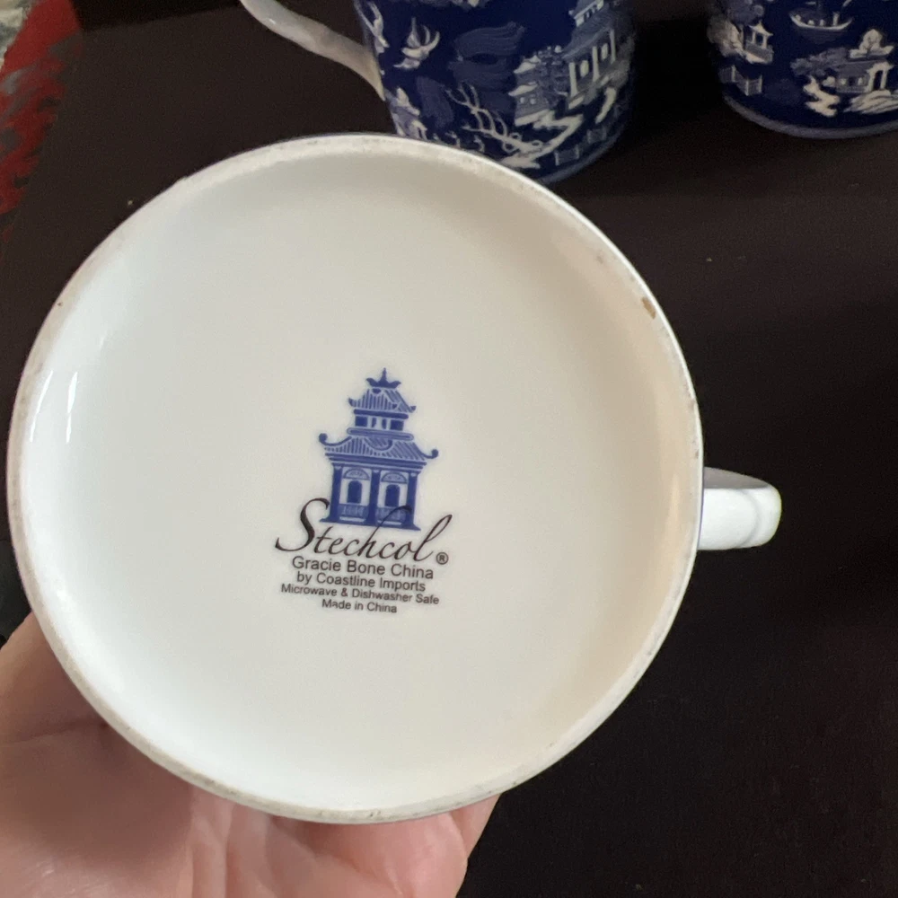 The STECHCOL Coastline Imports 4 Mug Dark Blue Willow Asian Design Gracie Bone China set is a charming addition to any kitchen or dining room. Featuring a beautiful Blue Willow pattern and Asian design, these medium-sized mugs are perfect for enjoying hot or cold beverages on all occasions. Made of high-quality bone china, this original set of coffee cups from Stechcol is sure to impress with its artful theme and vibrant blue color. Perfect for unisex adults, this set of 4 mugs is a timeless and elegant choice for any collector or home cook.