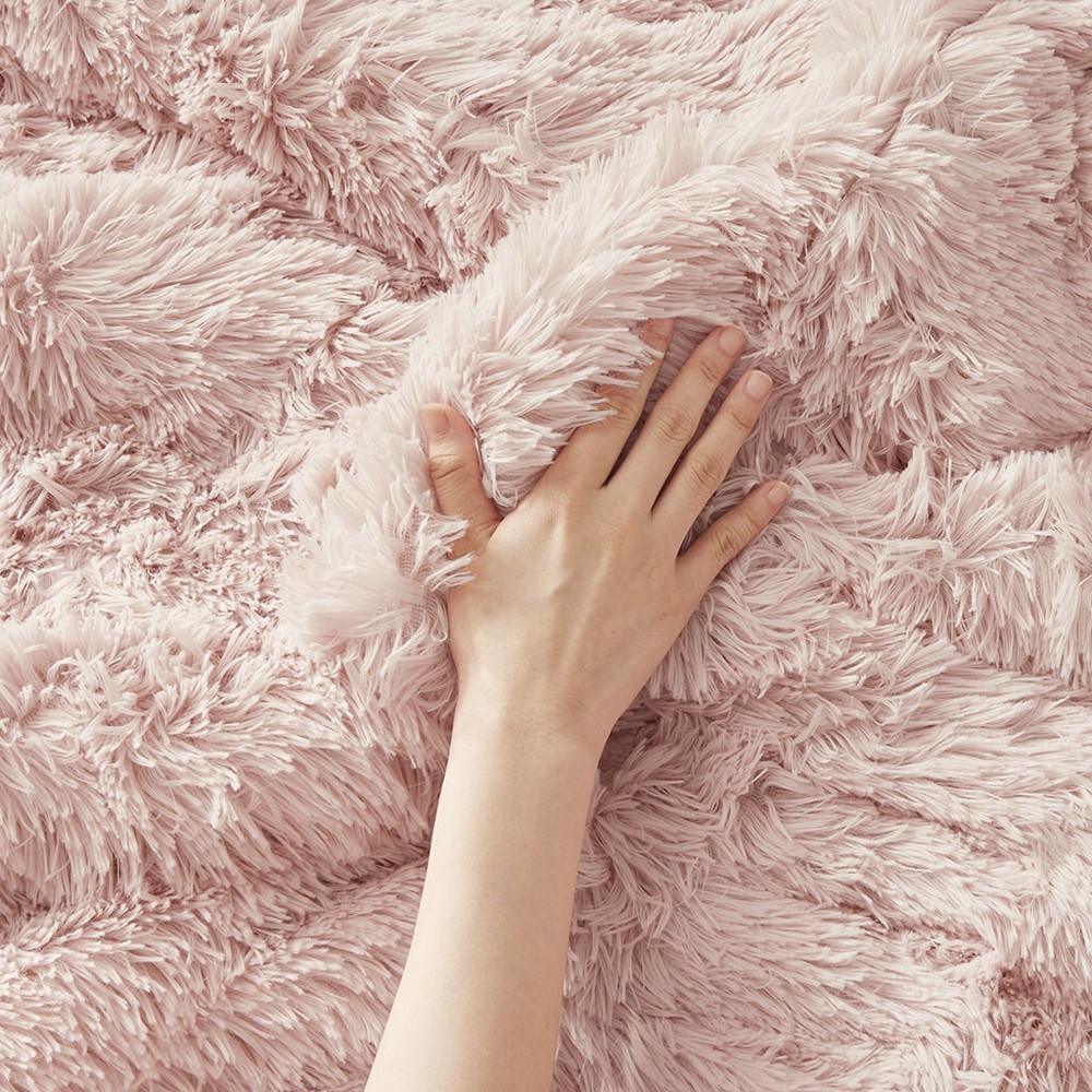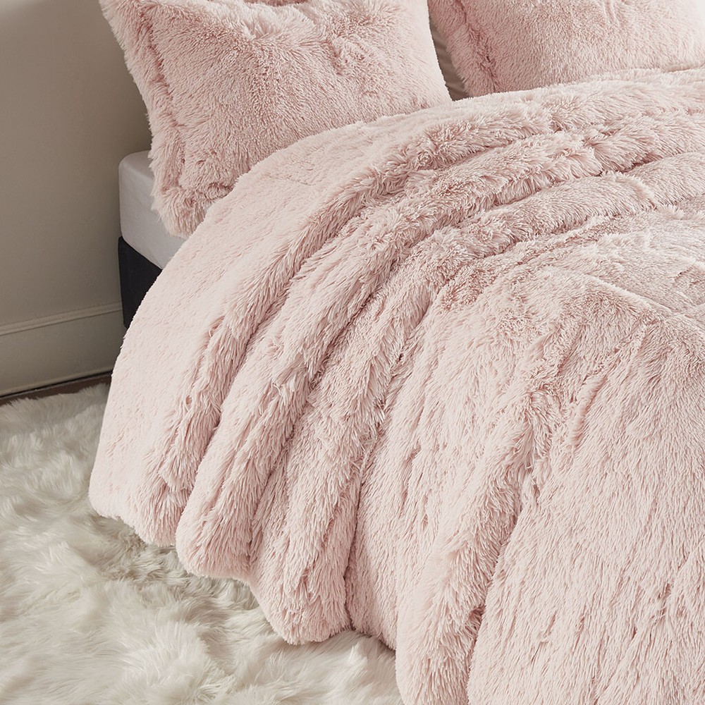 Luxurious Ultra Soft Pink Faux Fur Plush Cozy Comforter Set