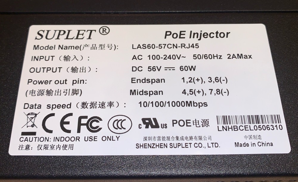 SUPLET PoE Injector LAS60-57CN-RJ45 (w/cable Power). Condition is New. Shipped with USPS Ground Advantage.