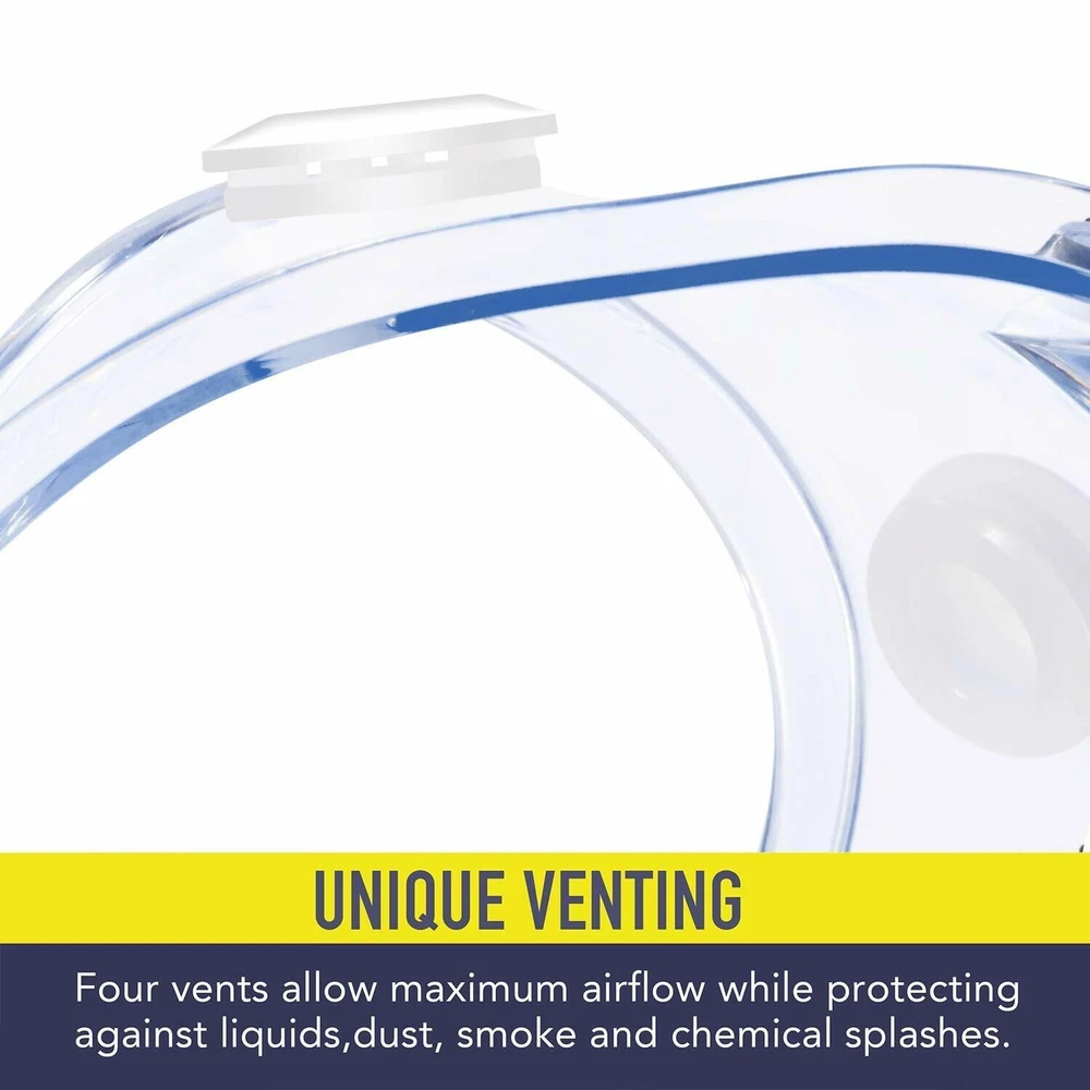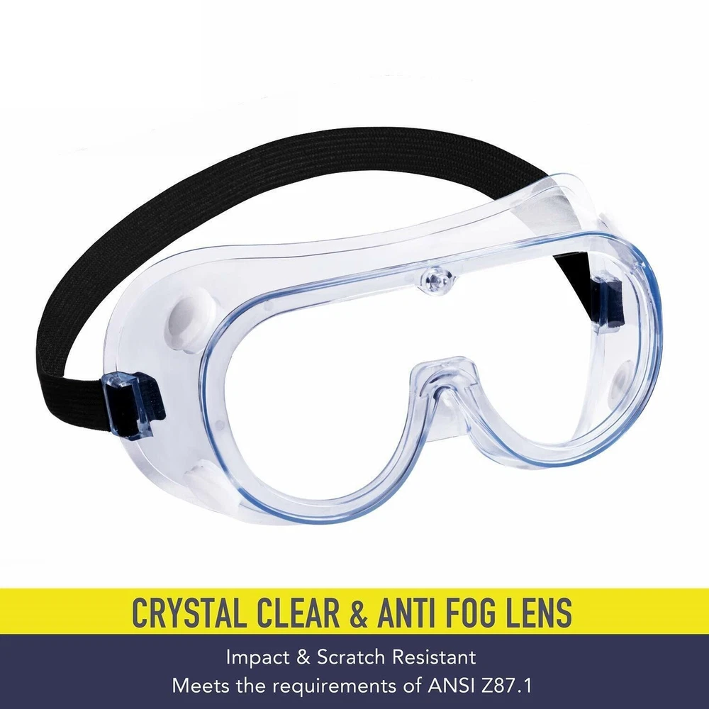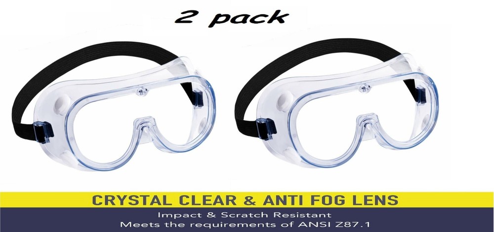 Lot of 2 Anti-Fog Safety Goggles, Protective Safety Glasses, Soft Crystal Clear Eye Protection Perfect for Construction, Shooting, Lab Work, and More Industrial Grade Protection - Our Protective Goggles Meets the requirements. Designed for Industrial, Commercial, and Househould Duties. Anti-Fog & Crystal Clear - Made with a clear, uncoated, polycarbonate lens, impact and scratch Resistant, giving you crystal clear vision all the time. Comfortable Goggles - Soft, wrap-around PVC frame offers maximum comfort, fits over most prescription eyewear, adjustable elastic strap fits all head sizes, one-size-fits-all. Unique Venting - Four vents allow maximum airflow while protecting against liquids, certain airborne particulates and chemical splashentering the eye area. Multi-purpose Glassess - Perfect for Construction, Shooting, Lab Work, DIY Projects, Yardwork, Hunting, Fishing, Woodworking, Medical & Dental Professionals, Painting, and More.