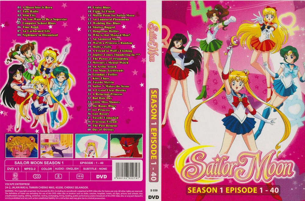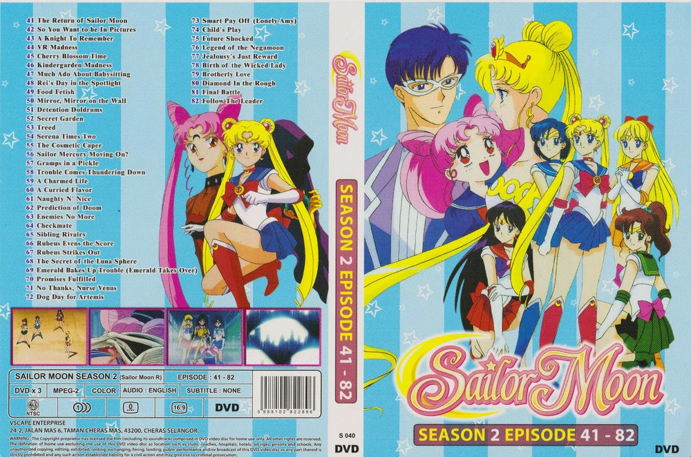 NOTE: The 1990s "Serena" Cartoon Network DIC Dub Season 1 and 2 had 82 episodes. Any listing with more than 82 episodes is not the original DIC dub, but the newer VIZ releases. Any listing with less than 82 episodes is missing DIC dub episodes. This can be verified through several sources on the internet. The exact episodes are listed on the back of each DVD case. In North America, the episodes aired from August 28, 1995 to December 21, 2000 on YTV in Canada, and in first-run syndication (and later on Cartoon Network) in the United States. Season 1 and 2 was dubbed and released in North America by DIC Entertainment and Cloverway. DIC DUB was voiced by Terri Hawkes. Sailor Moon is referred to as Serena, or meatball head by Darien, and Luna has a British accent. Sailor Moon Seasons 1 and 2 (DIC UNCUT English Dubbed Audio ) 90s DIC / Cloverway (Serena/Darien) on Cartoon Network! This Sailor Moon series is with Serena, not Usagi Episodes 1-82 (Complete Seasons 1 & 2) All Region NTSC (Works on all players worldwide) Number of Discs: 6 (2 cases with 3 discs each) Fast Shipping w/tracking DIC American Dub Version (Serena) NOT the newer VIZ Version Brand New / Factory Sealed ------------------------------- We sell DIC Season 1 at this link: https://www.ebay.com/itm/175087957664 We sell DIC Season 2 at this link: https://www.ebay.com/itm/175087957592 We sell DIC Season 3 at this link: https://www.ebay.com/itm/176176217820 We sell DIC Season 4 at this link: https://www.ebay.com/itm/176674459596 We sell DIC Seasons 3 and 4 at this link: https://www.ebay.com/itm/176678508957 We sell the original Sailor Moon 3 Movie set (1994 Uncut version) at this link: https://www.ebay.com/itm/175166613017 We sell the Season 1 UNCUT UNCENSORED (2003 ADV) version with Original Japanese Audio only (English subs) at this link: https://www.ebay.com/itm/174230224679 We sell the Season 2 UNCUT UNCENSORED (2003 ADV) version with Original Japanese Audio only (English subs) at this link: https://www.ebay.com/itm/174838535557
