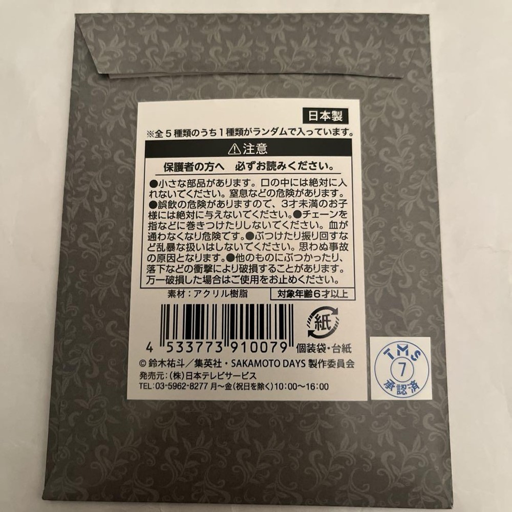 Free eBay listing template designed by dewiso.com Sakamoto Days Nagumo Acrylic Keychain with Postcard - Chair Design Key Features **Product Description:** Get ready to add a touch of fun to your collection with this Sakamoto Days Acrylic Keychain featuring the character Nagumo! This keychain comes with a stylish case and a postcard, making it a perfect gift for fans or a delightful treat for yourself. The vibrant design captures the essence of the character, and the acrylic material ensures durability while keeping it lightweight. Whether you want to attach it to your bag or display it on your shelf, this keychain is sure to stand out! **Item Specifics:** - Brand: Sakamoto Days - Product Type: Acrylic Keychain - Character Name: Nagumo - Model: TD Acrylic Keychain - Includes: Postcard, Case Specifications Brand Shueisha Country Japan Franchise SAKAMOTO DAYS TV Show SAKAMOTO DAYS Color Multicolor Theme Action, Comedy, Supernatural, Assassins, Family Animation Studio Studio Mir Features Japan Import, Collector's Item Item Width The ruler in the image uses centimeter markings. Product Description Product Description NA Free eBay listing template designed by dewiso.com Payment Information We accept payments with credit cards, debit cards, gift cards, Apple Pay, Google Pay, PayPal, and PayPal Credit. Shipping & Handling There is no shipping charge. Shipping from Japan Economy Japan Post. I will provide you with a tracking number, but please note that it may take some time for tracking updates to appear. My shipping policy is to ship items within 15 business days (excluding weekends). I try to ship as quickly as possible, but due to frequent travel for my day job, I can only ship within 15 business days at the most. In rare cases, it may take longer to ship until the last day of the 15 business days. Please understand if this is the case. The shipping address must be a registered address on eBay. Please make sure that your registered address is correct when making your purchase. Return Policy We accept returns within 30 days of the item’s arrival, provided the item remains unopened. Customs and Duties Import duties, taxes, and charges are not included in the item price or shipping cost. These charges are the buyer’s responsibility. Please check with your country’s customs office to determine what these additional costs will be prior to bidding or buying. I do not mark merchandise values below value or mark items as gifts; International government regulations prohibit such behavior.