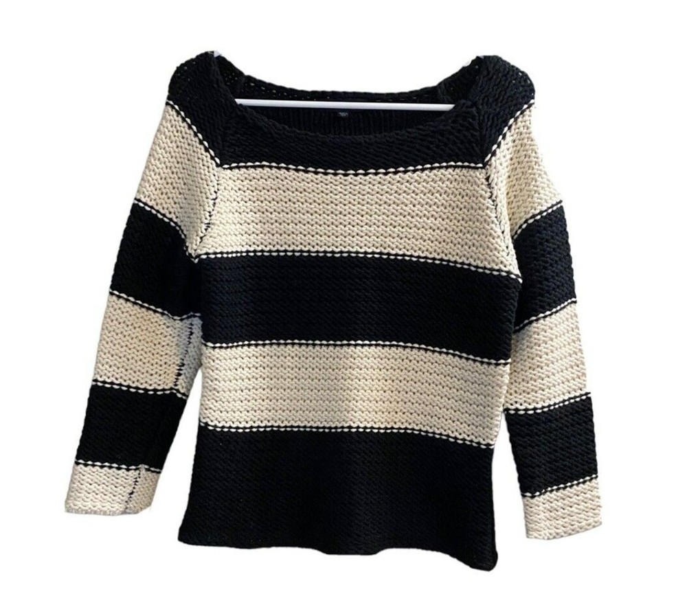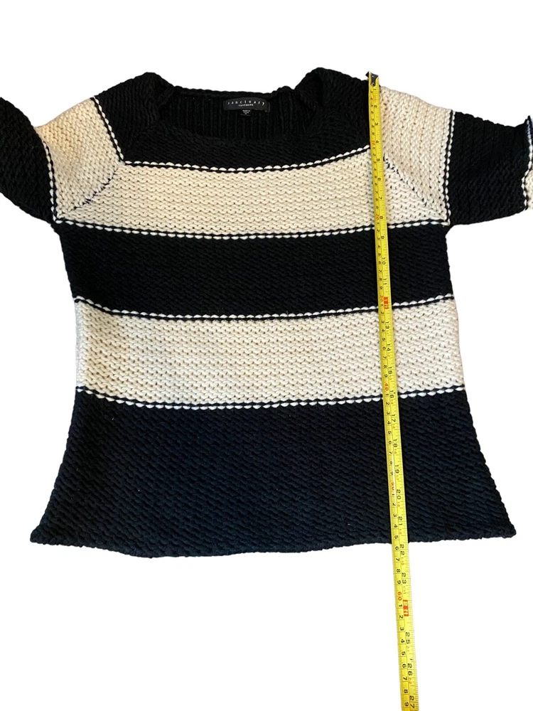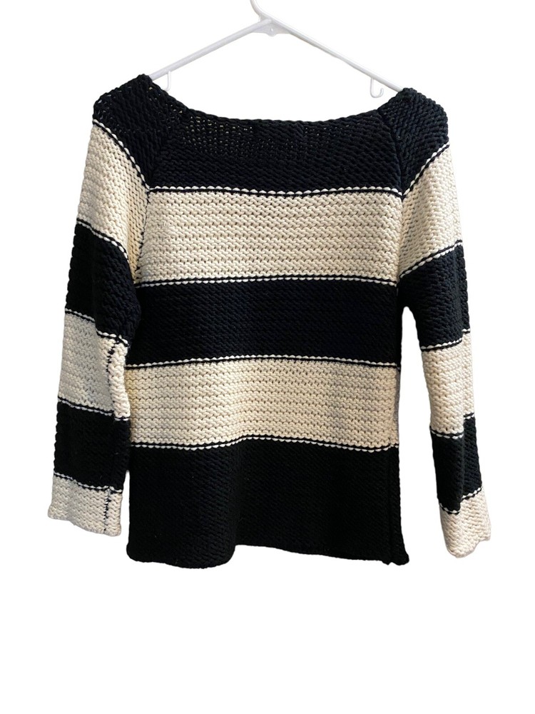 Sanctuary Cream White Stripe Alexa Sweater Popover Women Sweater Top Size Small. 3/4 Sleeves Good pre-owned condition Measurements in pics
