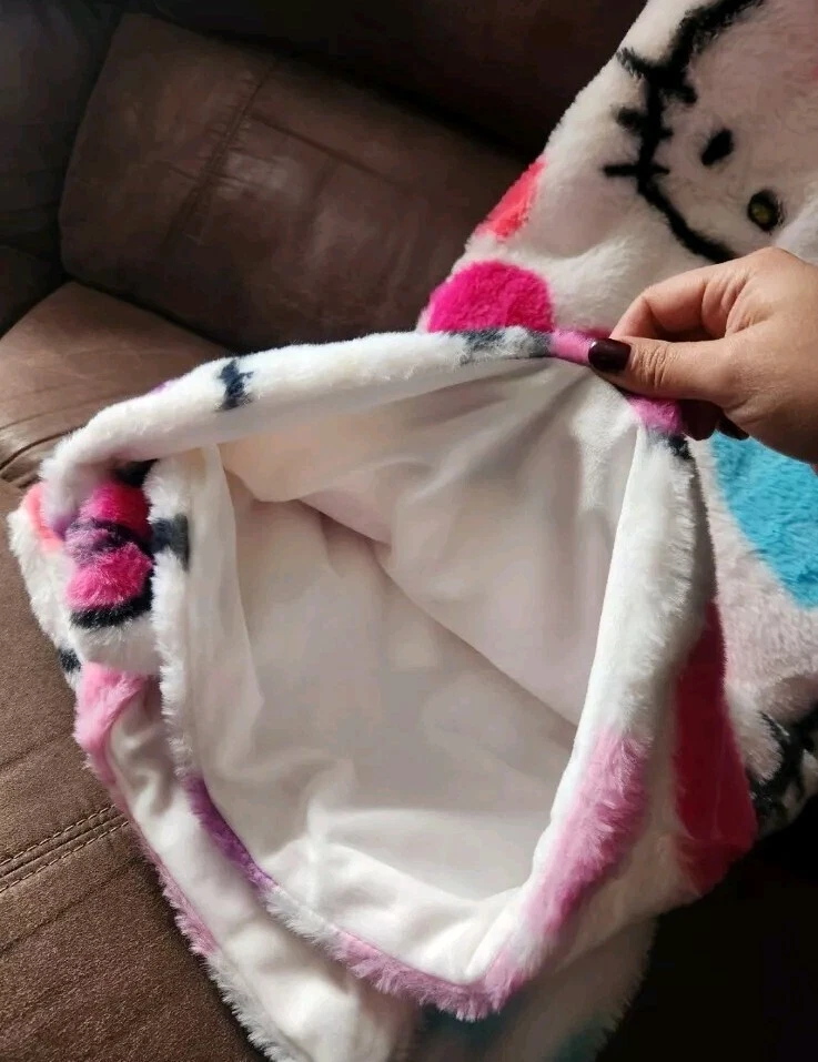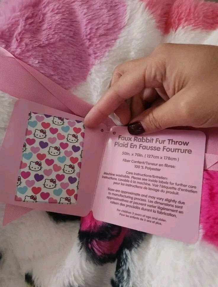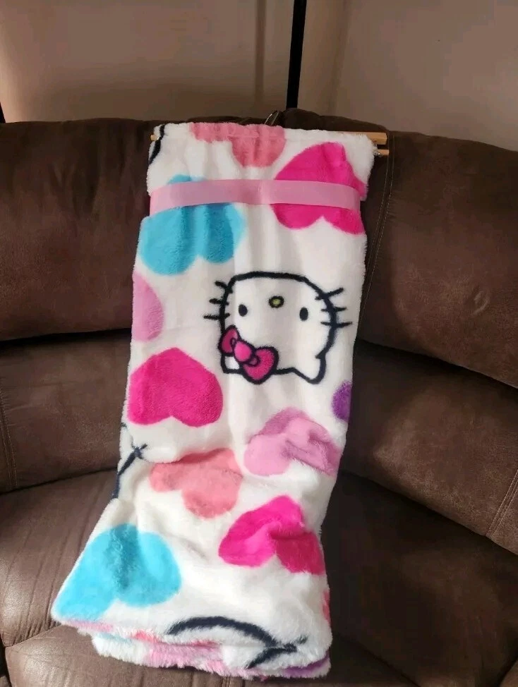 Brand New!!! Sanrio Hello Kitty & Friends Faux Fur Cozy Throw Blanket Valentine's 2025 Collection Size: 50" IN x 70" IN Super cute heart print Machine Washable Material: 100% Polyester Perfect for Hello Kitty Collectors ♡ Will be packaged carefully From a smoke free home