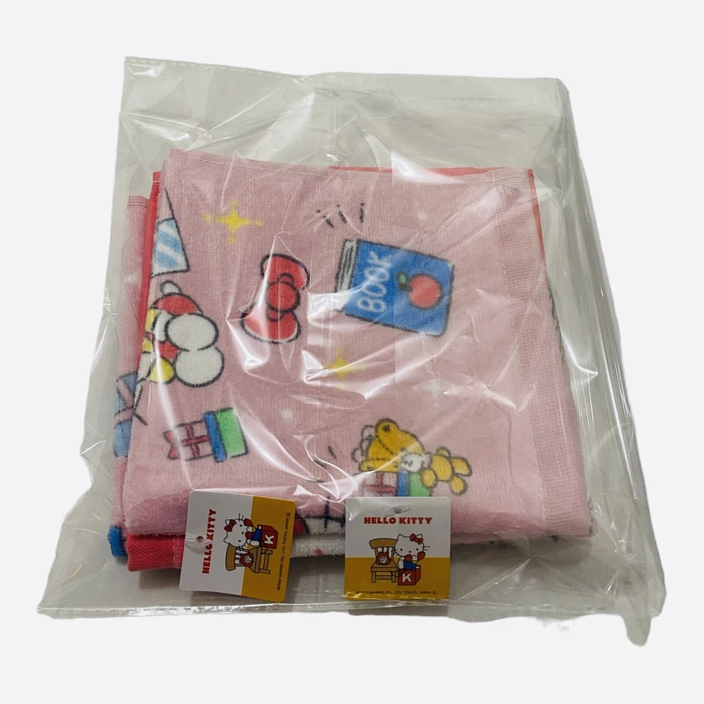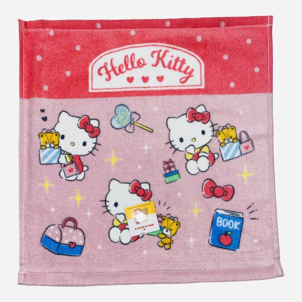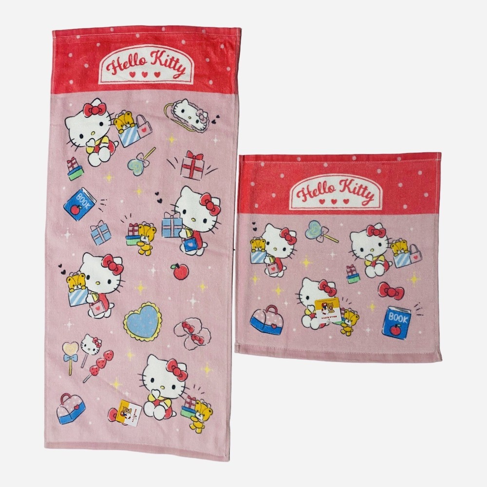 Introducing an absolutely adorable Sanrio Hello Kitty Towel Set of 2, imported all the way from Japan! This set is perfect for collectors and fans alike. The towels are made of 100% cotton and feature a multicolor design with Hello Kitty, known for her cute and kawaii character. Set includes: Face Towel (29.5in x 13.5in) and Hand Towel (13.5in x13.5in) Design: Shopping Face Kitty New product with original tags. Care instructions: Do not use bleach. Color may fade slightly during first wash. Do not tumbler dry. Wash on gentle cycle.